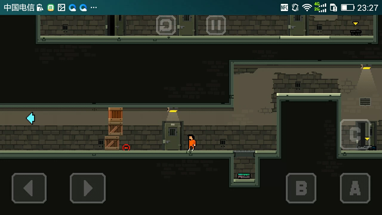 B键是武器发射键。为了增加犯人们的越狱难度,地牢除了复杂的路径设计,还在不停的地方放置了许多高大的木箱。有些时候,玩家可以通过绕路来避开这些烦人的障碍物,但有些时候,木箱堵塞住前进的唯一道路,就不得不面对了。在地牢里穿梭时,玩家会遇到一些被狱警抛弃的武器,按动b键即可捡起武器。地牢里并没有需要射杀的敌人或怪物,但这些武器也并不是摆着好看用的,玩家可以在面对木箱时按动B发射子弹,清出道路。