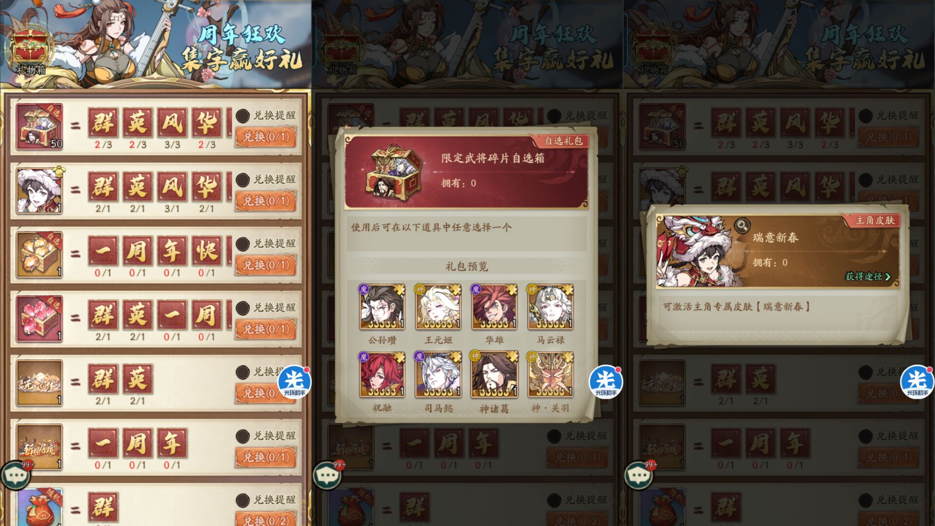 ③另外所有的灵将和联动武将本次周年庆无法置换。
