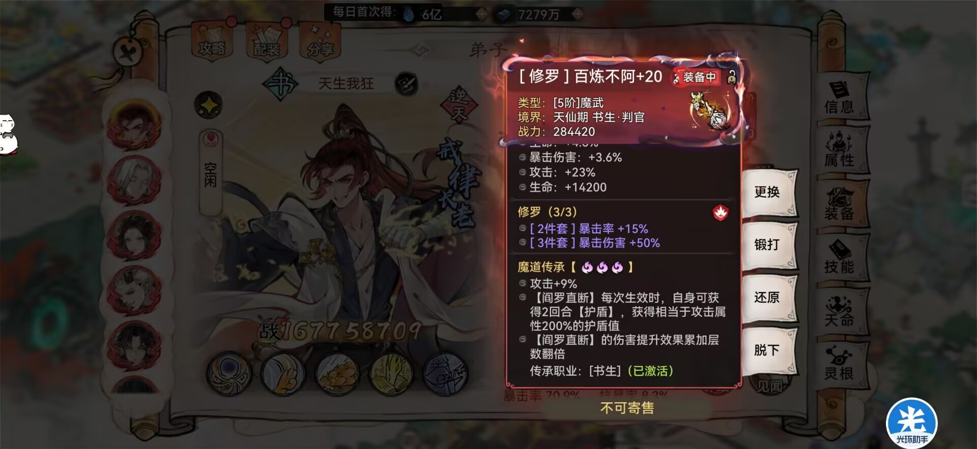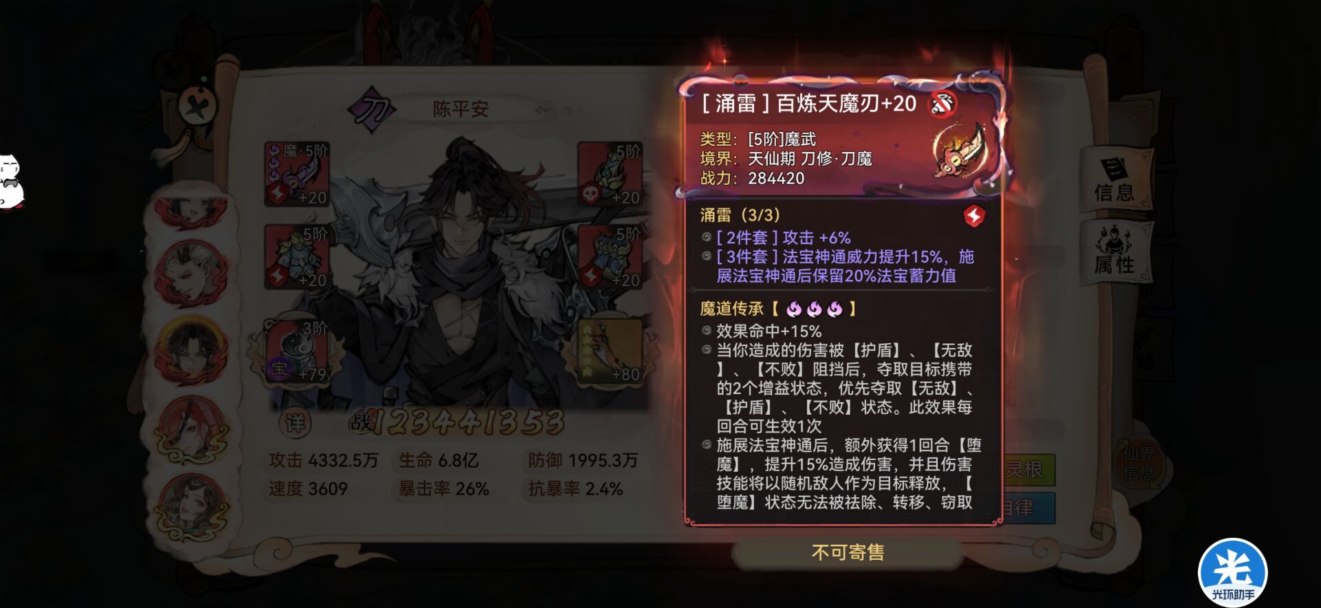 魔装为【不阿】主玩狂生的朋友推荐优先凝练三阶伤害可大幅度提升。