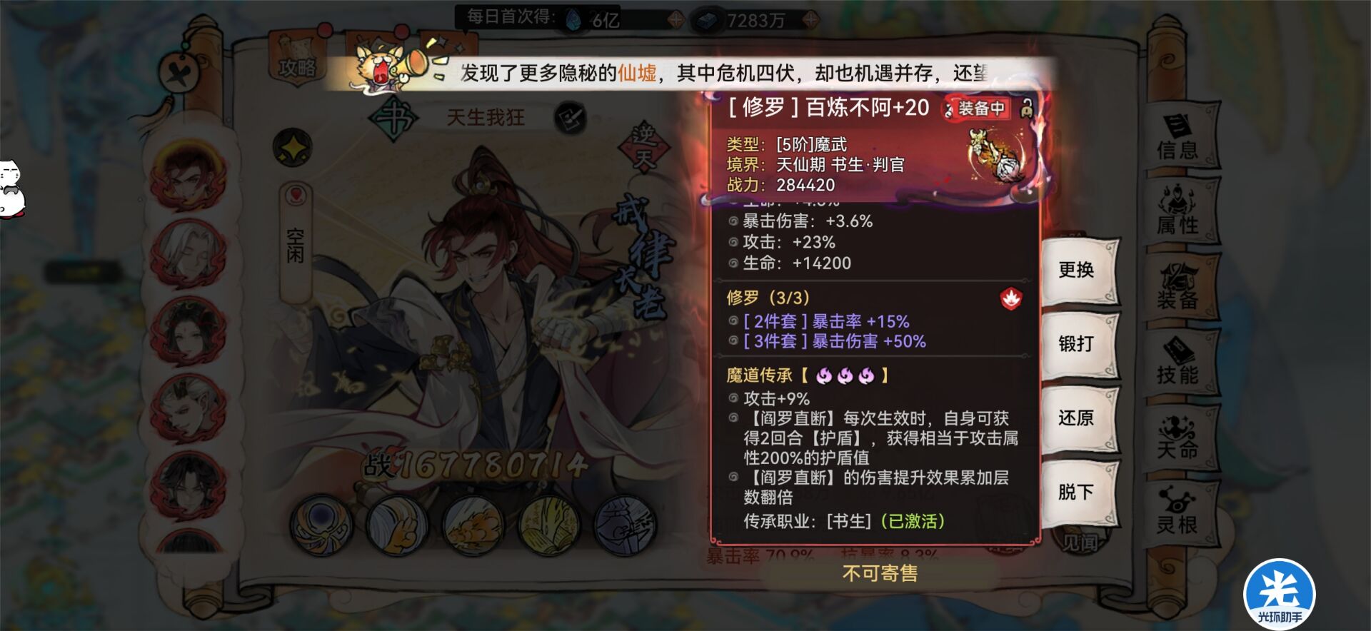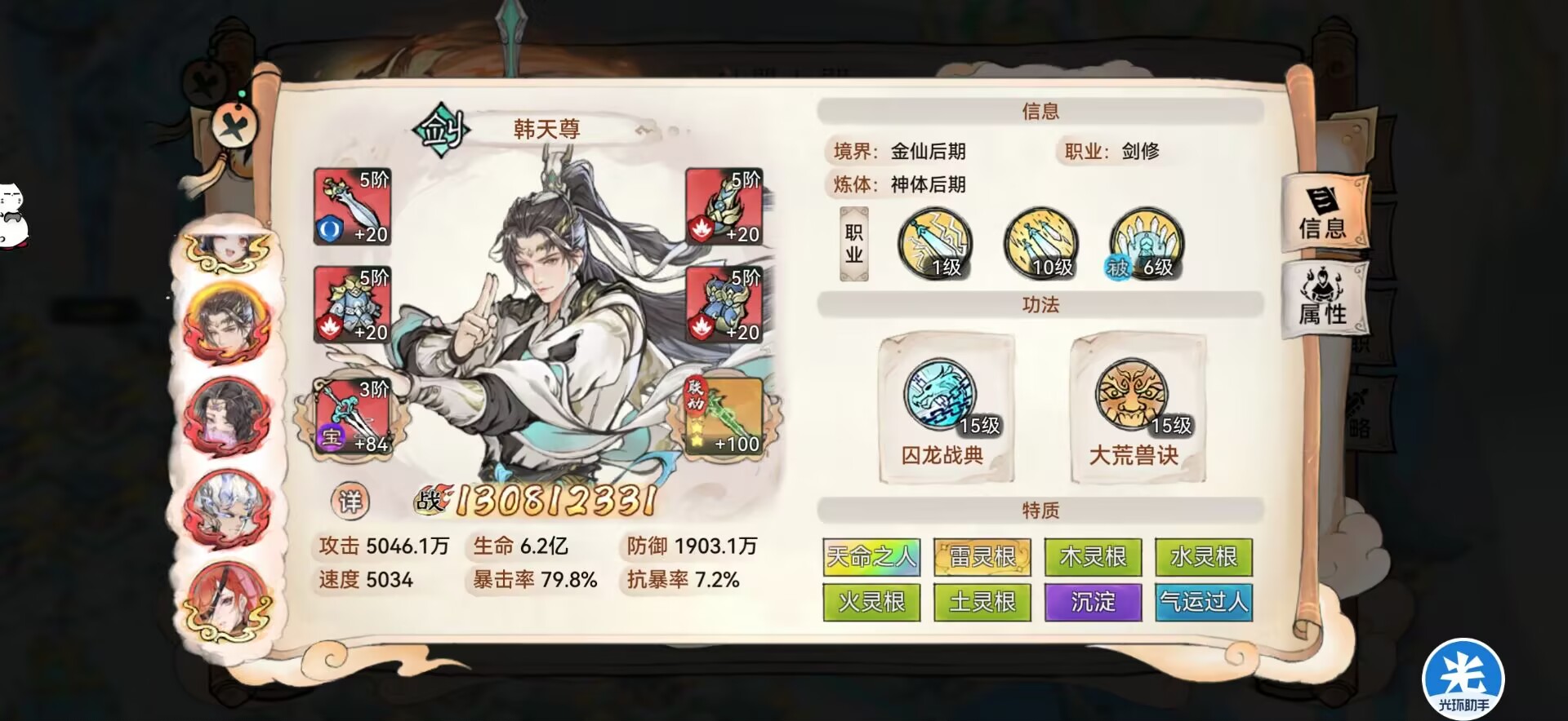 比韩立和二阶老李都猛,而且爬塔配合阿璃真的老猛了,唯一缺点和老李韩立一样打仙墟不行。