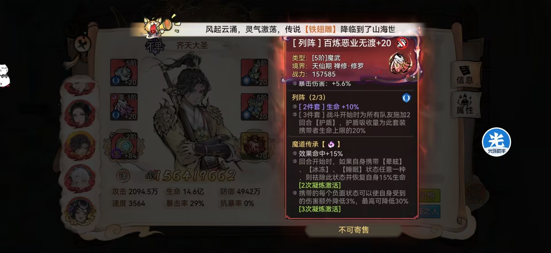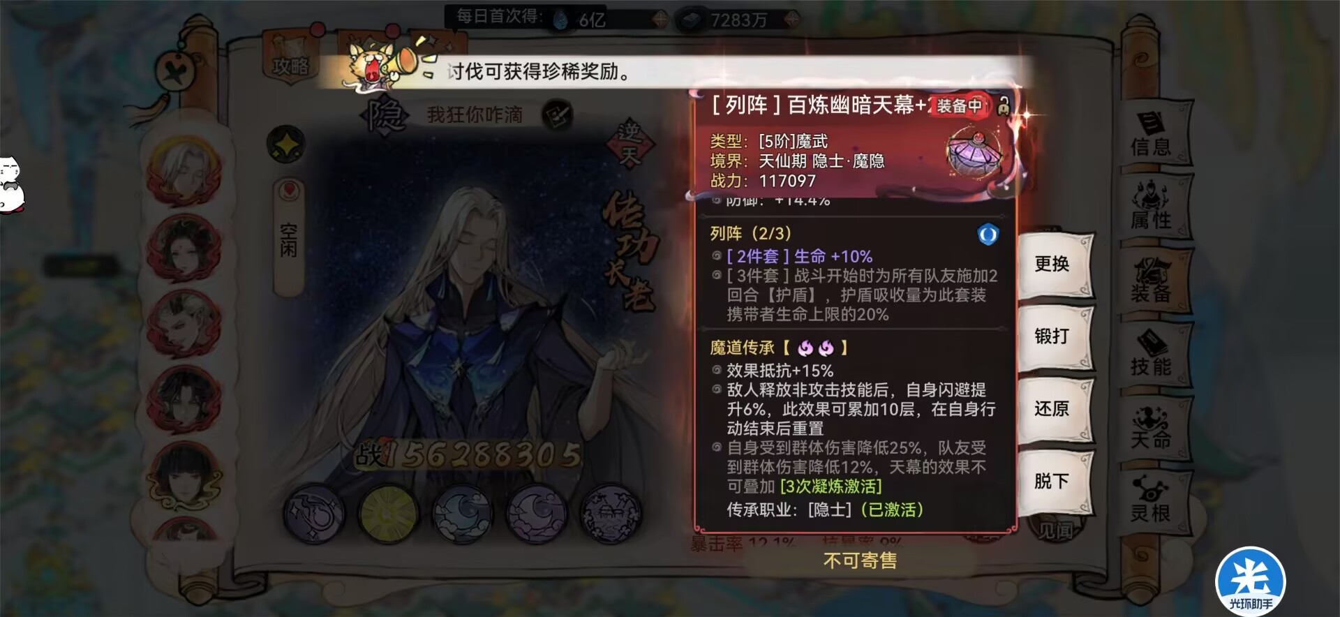 凝练三阶的魔刀不仅可以夺取无敌和不败,解决了卫寒砍前排砍不动的问题,而且还可以提升自身伤害,同时自身技能不在单纯砍前排可以随机砍在后排敌人身上,pvp直接质变。