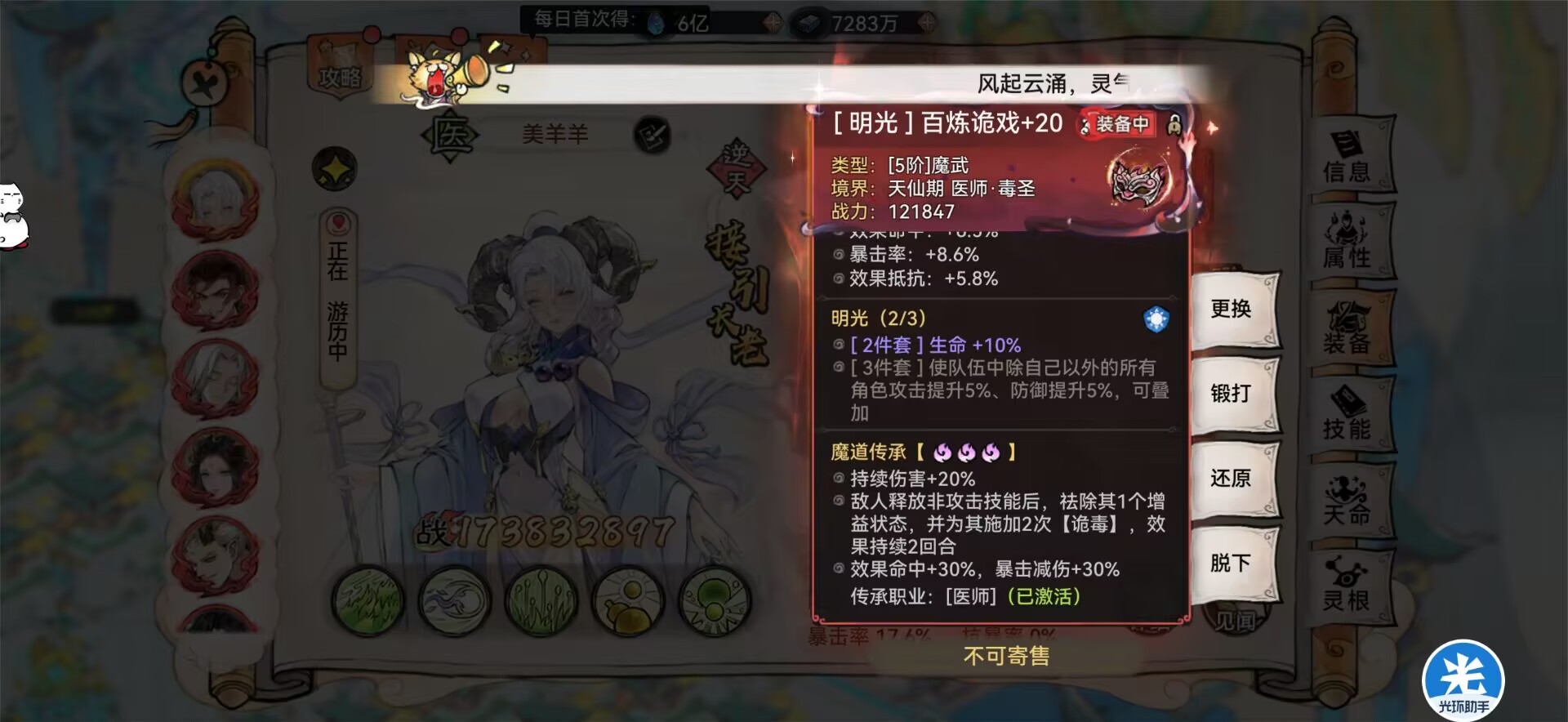 魔装为【诡戏】可以优先凝练三阶,提升持续伤害和命中。