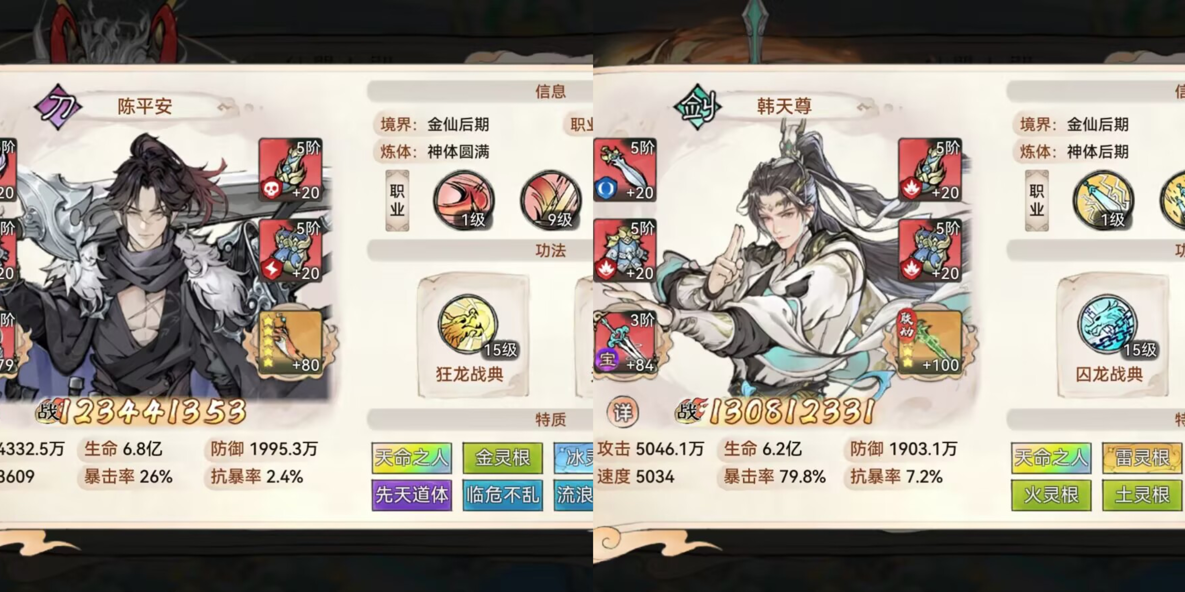 玩快攻队的朋友可以优先凝练韩立的仙装,虽然二阶老李和狂生登场以后,韩立的实力不如从前,但是这个版本也还是很给力的。