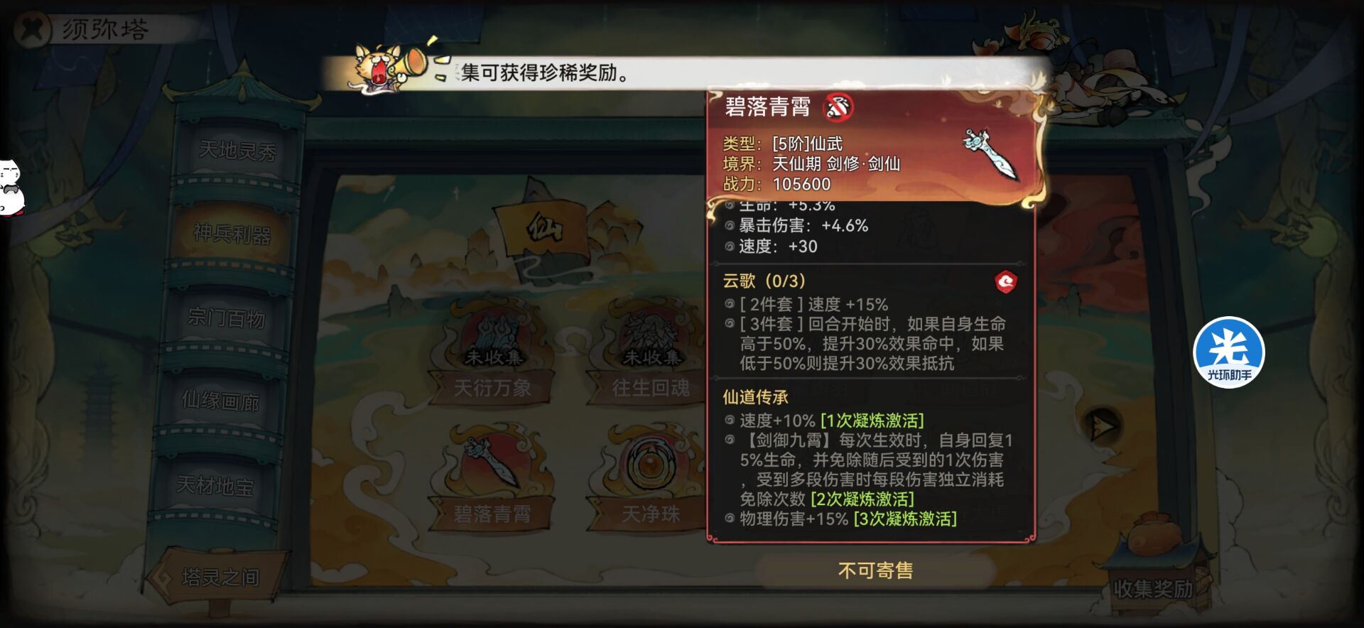 韩立仙装名为:【碧落青霄】可优先凝练三阶。