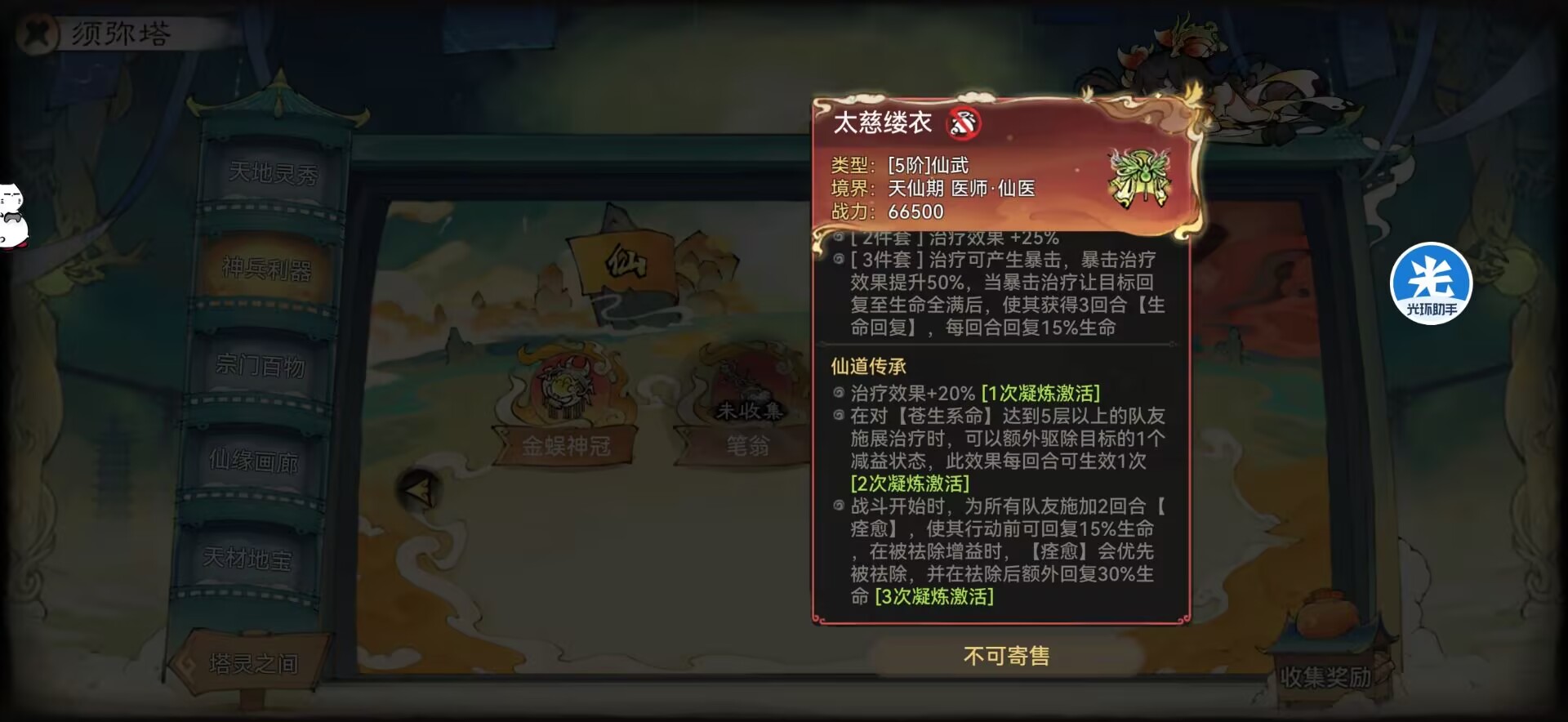 仙装为【太慈镂以】也可以优先凝练三阶,提升阿璃的治疗和辅助能力。