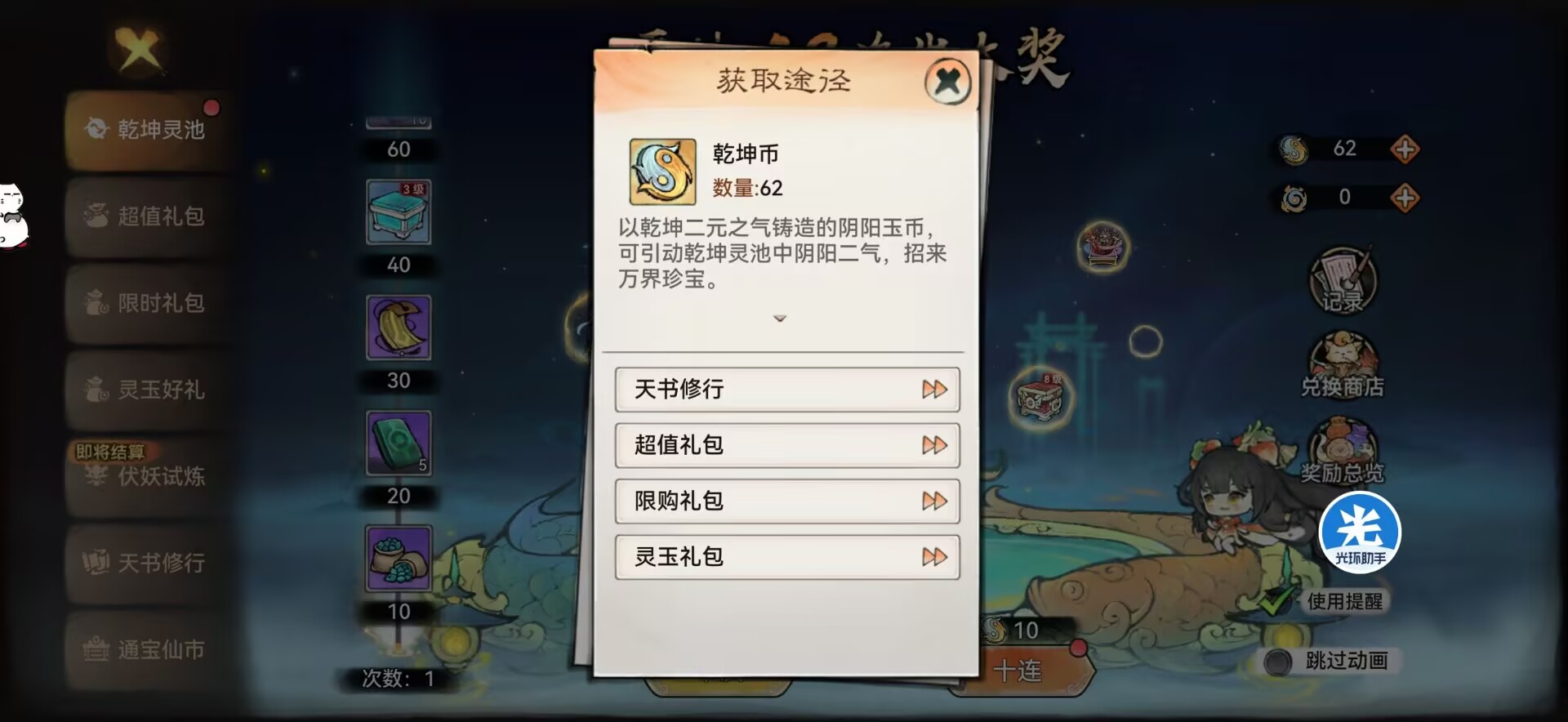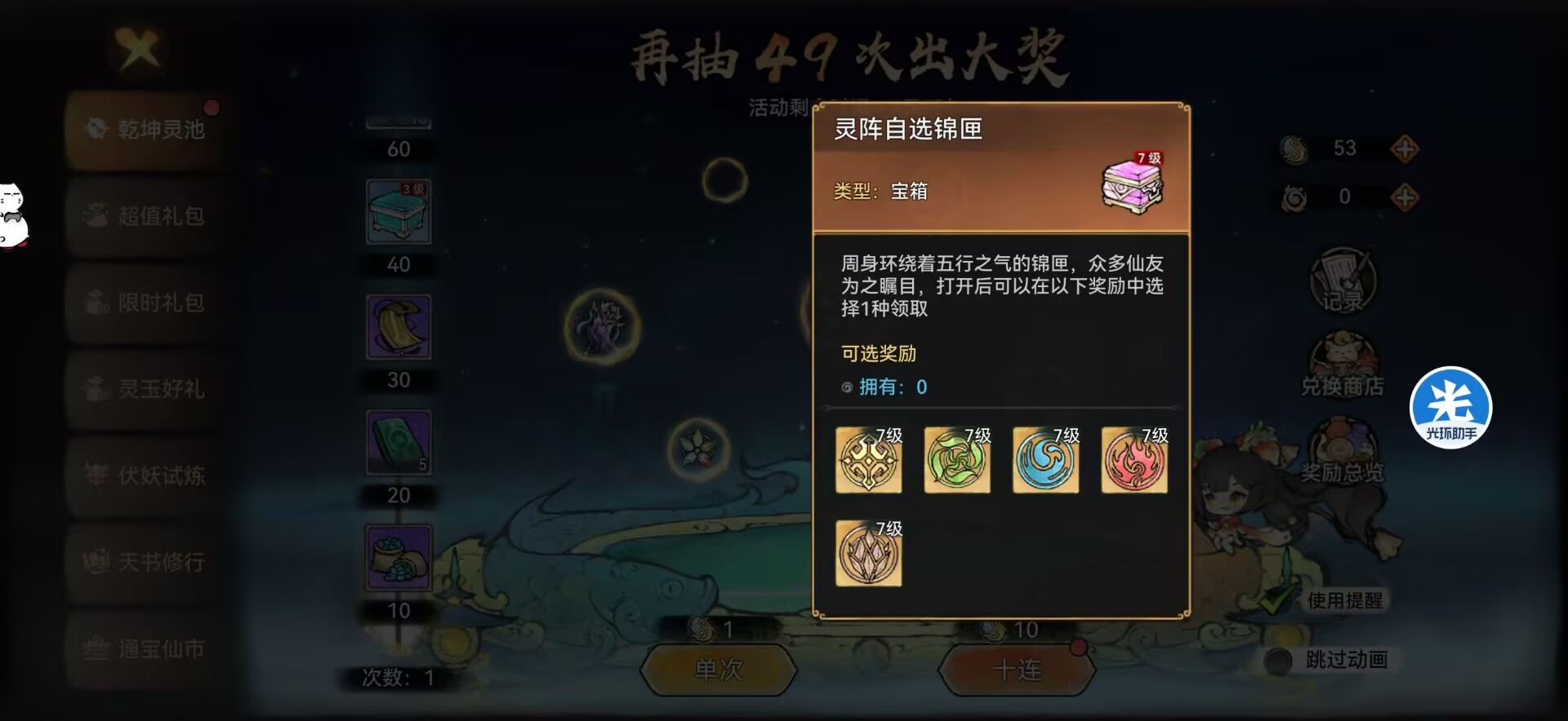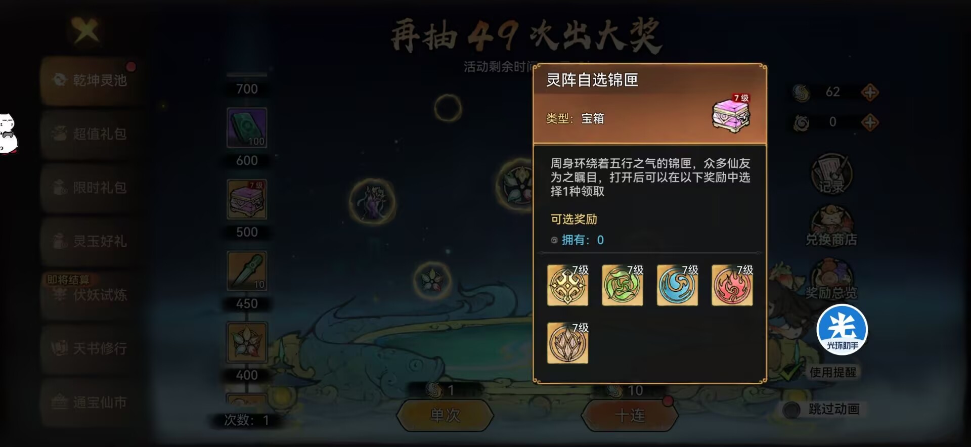 500抽可以获得很多的【乾坤之气】记得在商店中优先兑换8级灵阵。