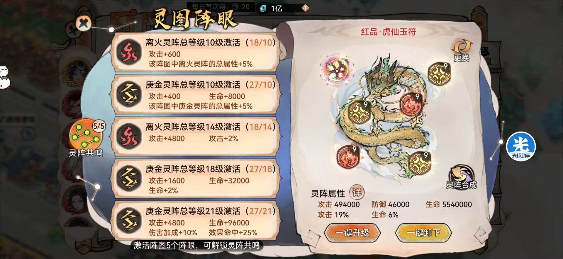④当激活灵图阵眼全部的等级的时候,可以开启【灵阵共鸣】又能够提升我们一波属性。
