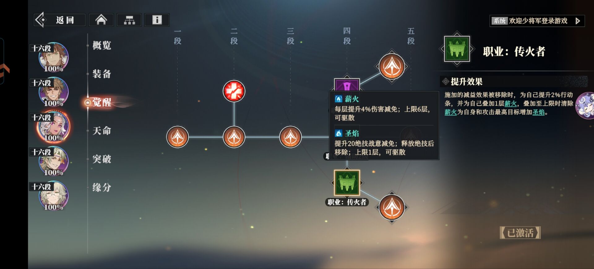 ⭐当薪火🔥叠到6层,可以给自己和一攻建议20点战意消耗,极大缓解了队伍战意的需求,而且祝融自身绝技释放也只需要20点。