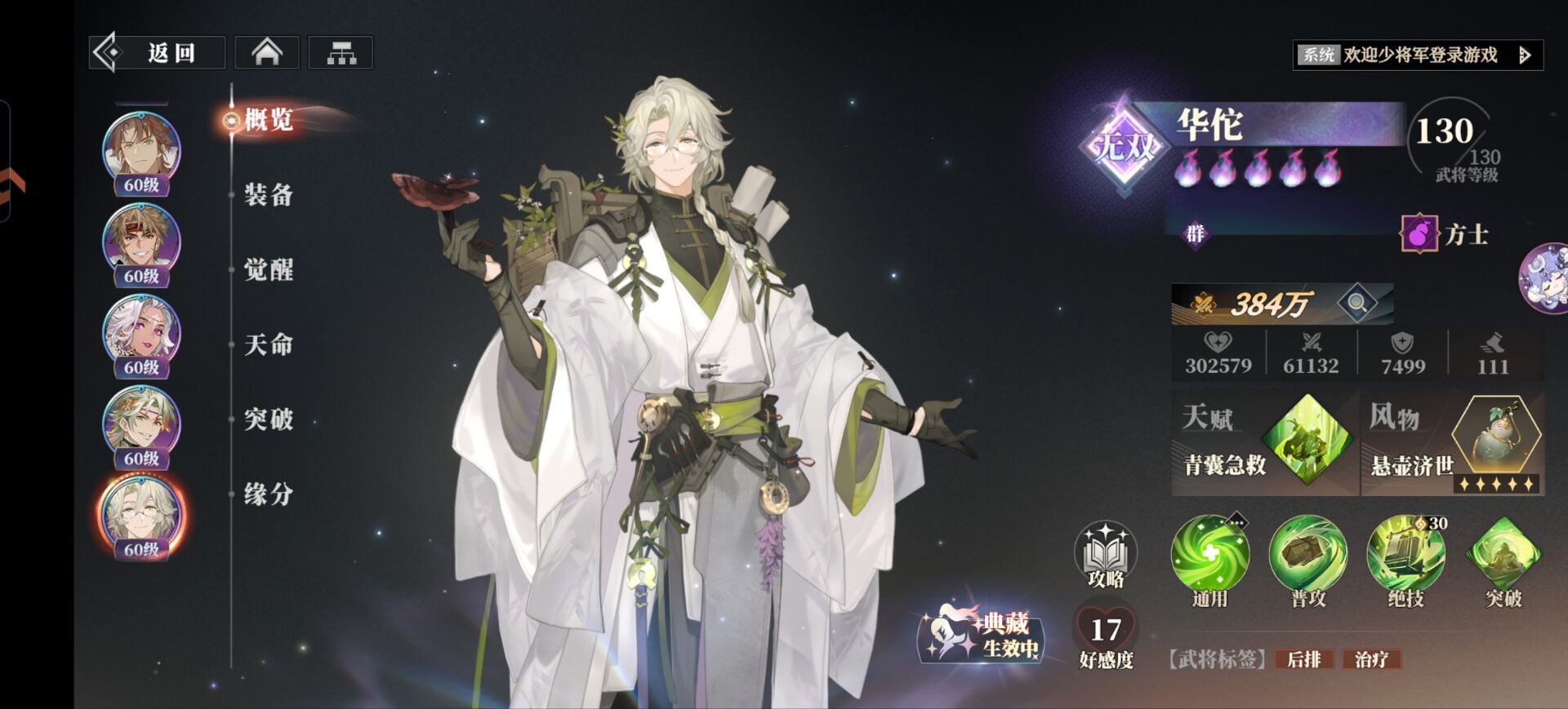 3火的话天赋还加了驱散和禁疗在pvp中克制像华佗这种净化能力强的武将非常有用。