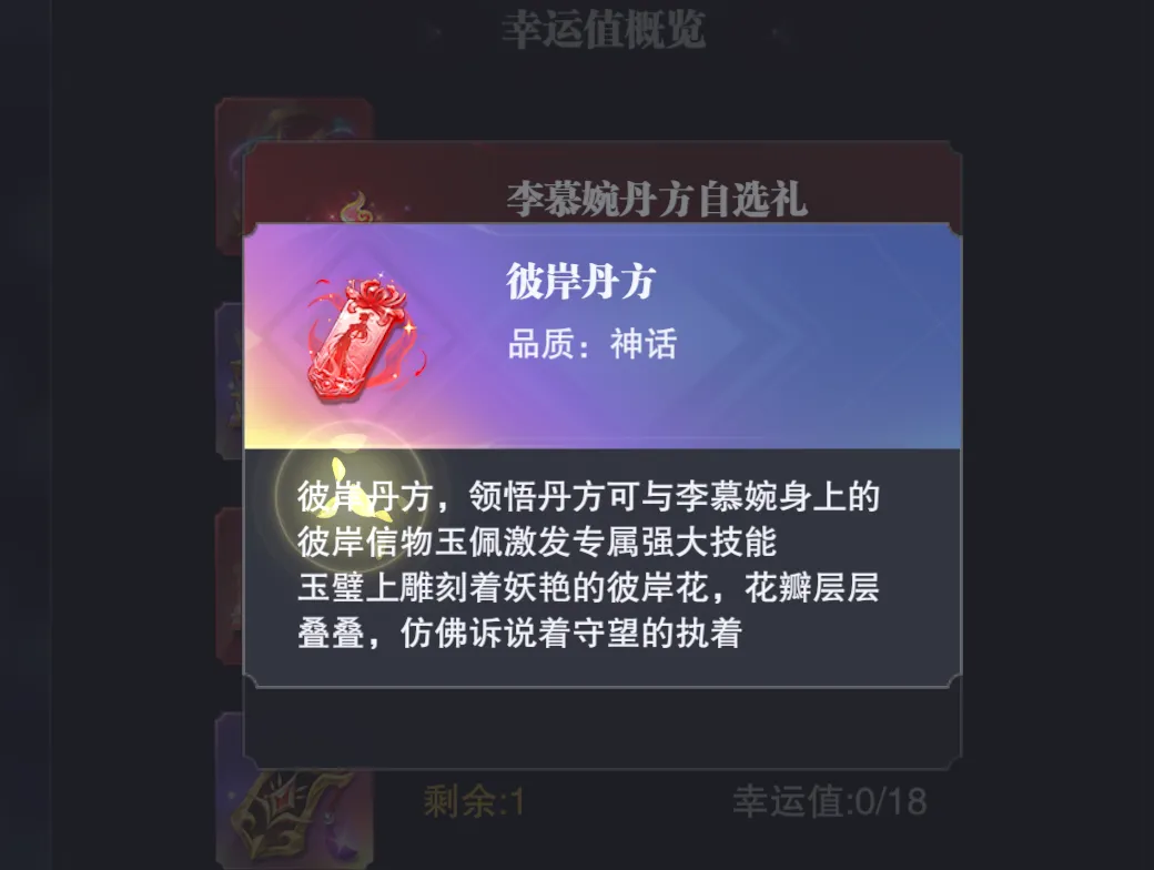 • 右侧扭蛋17抽保底(289抽)的彼岸丹方获取成本为:1084元(需购买到328元礼包)+8000钻石