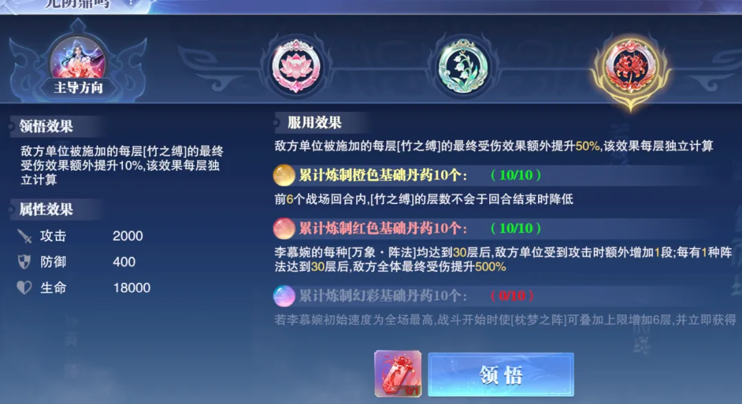 然后下一个核心资源便是李慕婉的彼岸丹方,这个丹方可以激活李慕婉“元阴鼎鸣”效果中的第三个丹方增益效果,其提升还是不错的,但相应付出的成本便是这个彼岸丹方得17抽扭蛋才能保底拿到......成本过于夸张了。