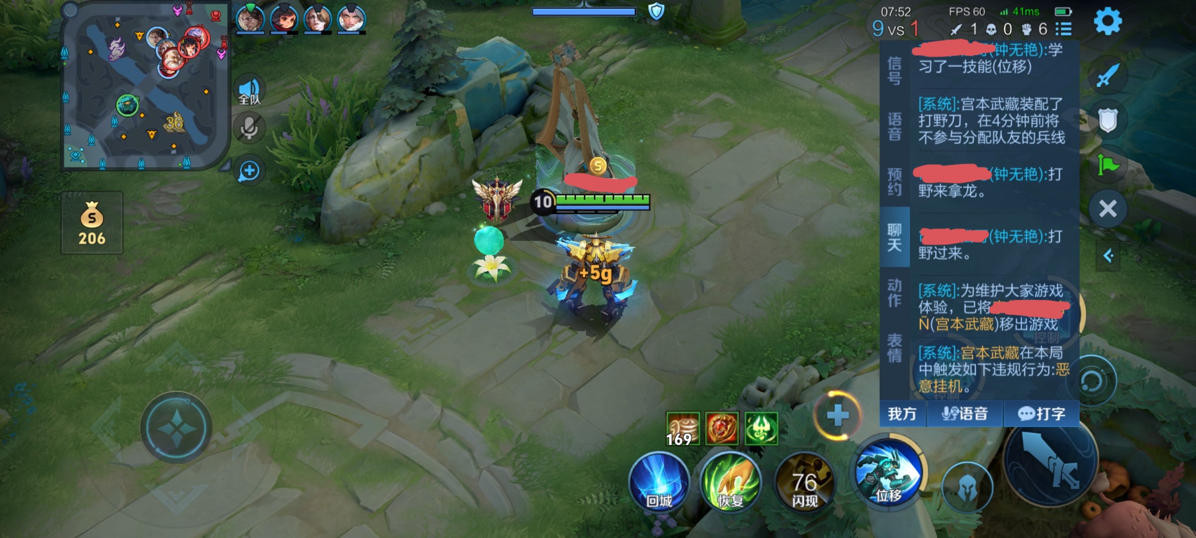 马上团战了,宫本全程都在支援,就没有挂机,就很无语,演都不演勒,后面一直在输,还有个对面安琪拉3秒一个大。