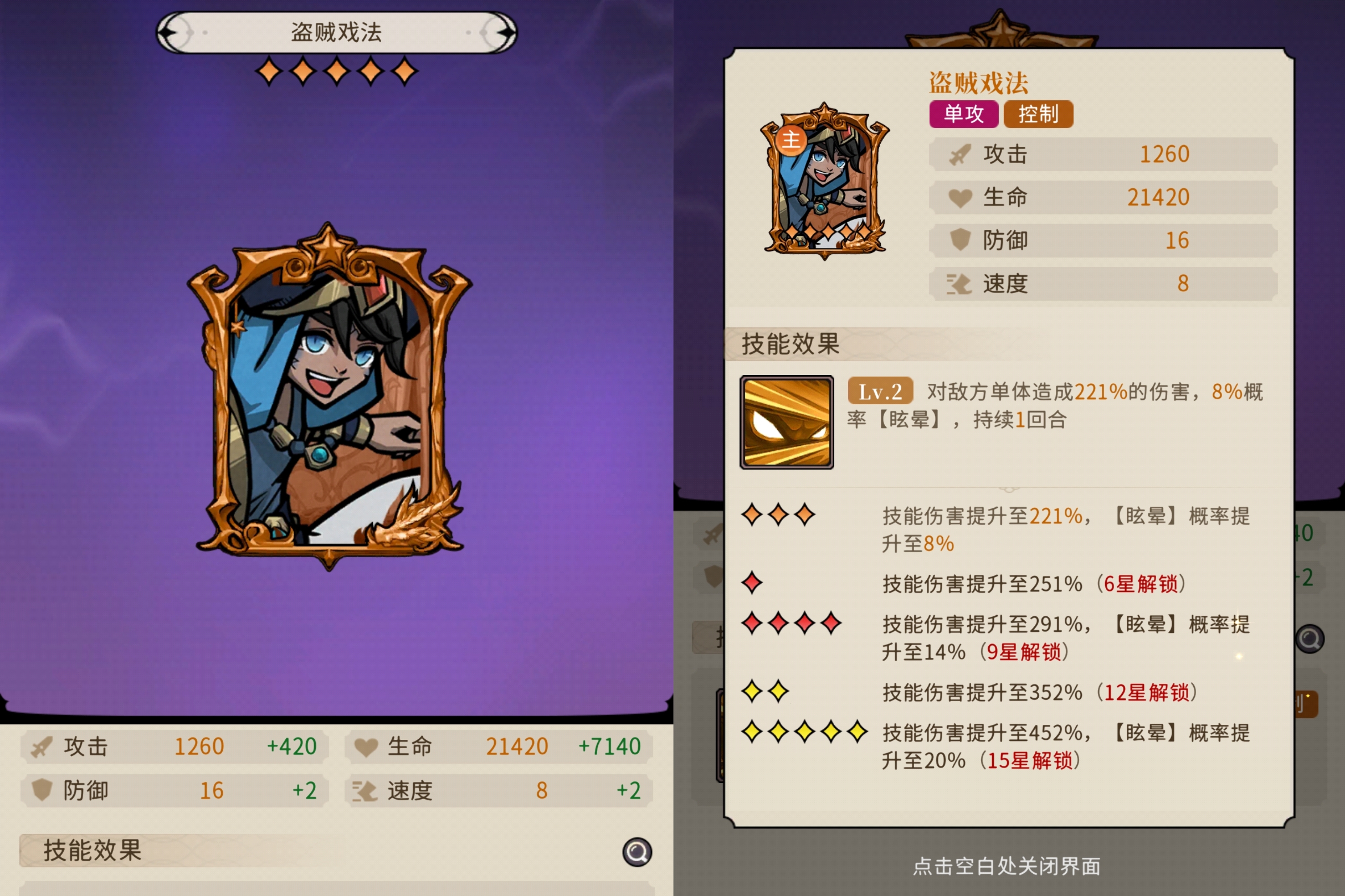 单体伤害+概率眩晕,满星最大可以造成452%伤害+20%眩晕。