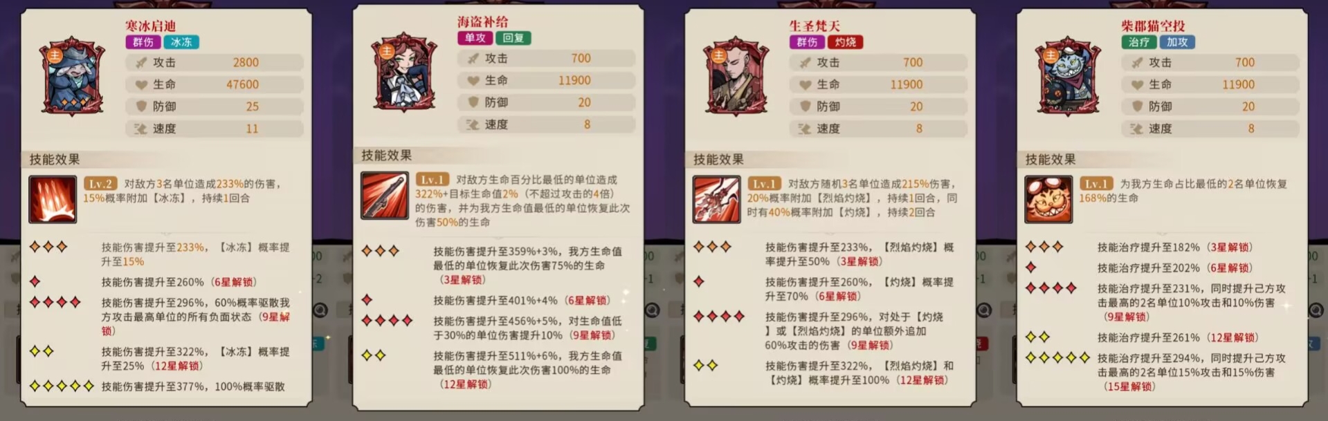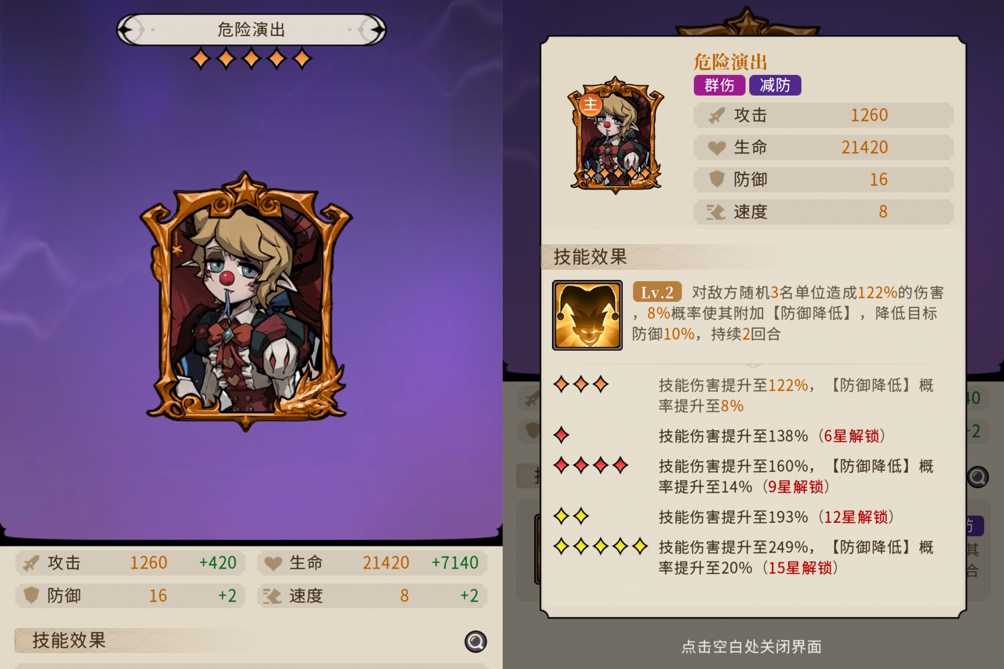满星基本伤害倍率为249%,有20%降低防御的效果,最大可以降低敌人10%防御2回合。