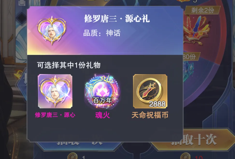 • 天命转盘中SP修三源魂心或魂火自选的获取成本约为:5000元+10000钻石左右