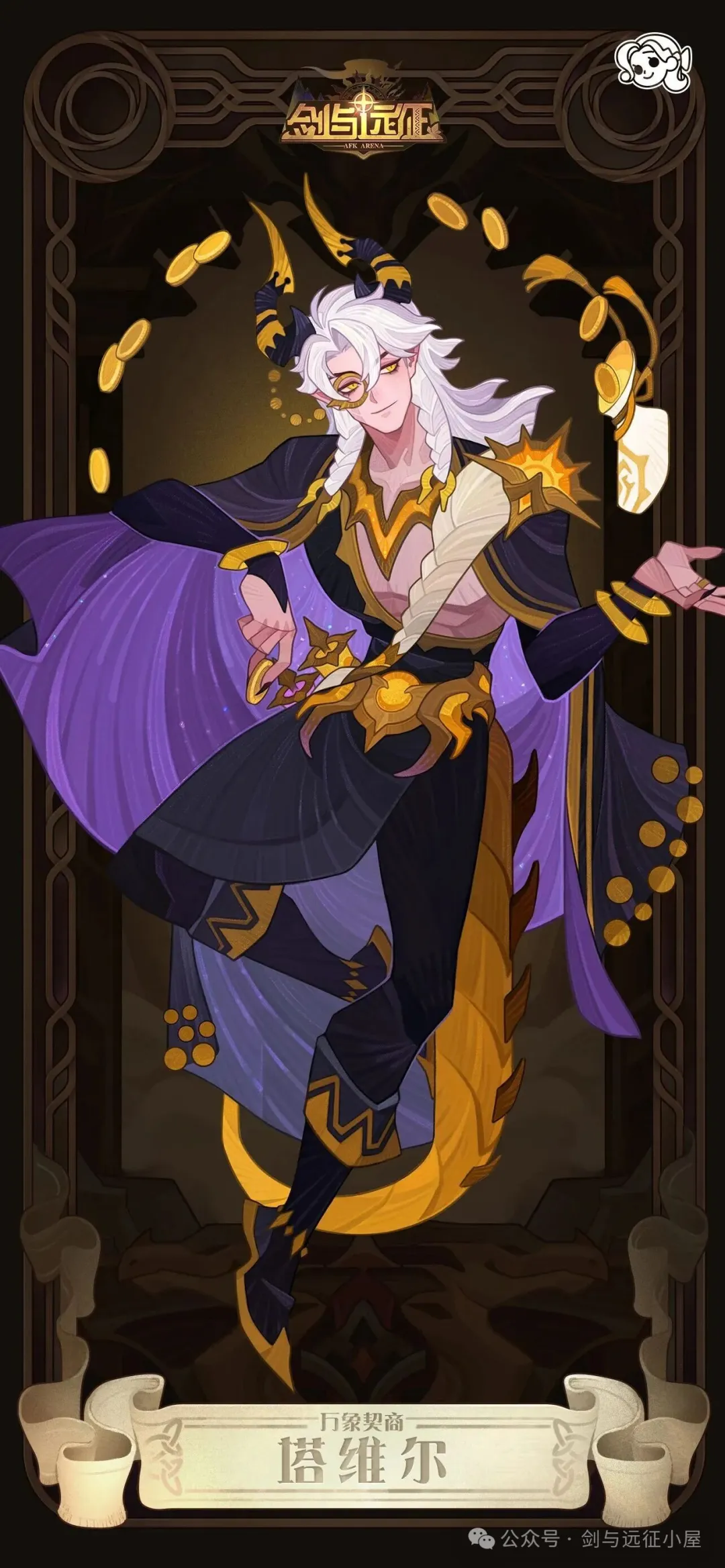 被动效果:场上每有1个单位与塔维尔存在协议关系,塔维尔将拥有1层“情报”。每拥有1层情报,技能“挥金如土”的金币造成的伤害提升。