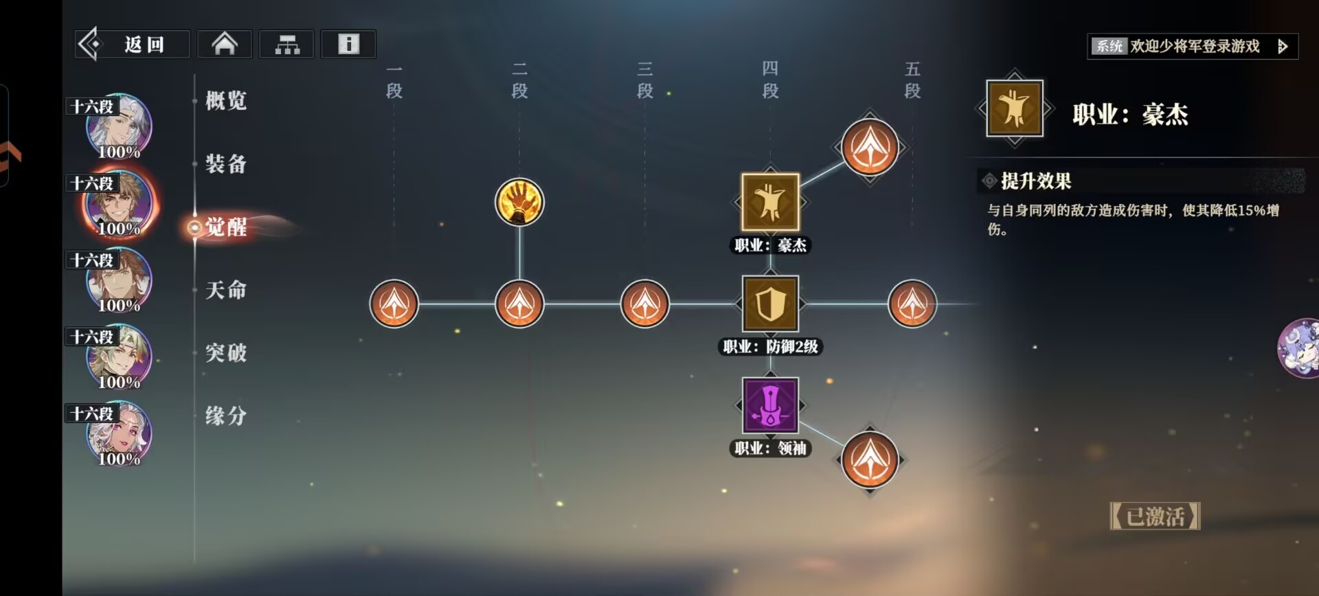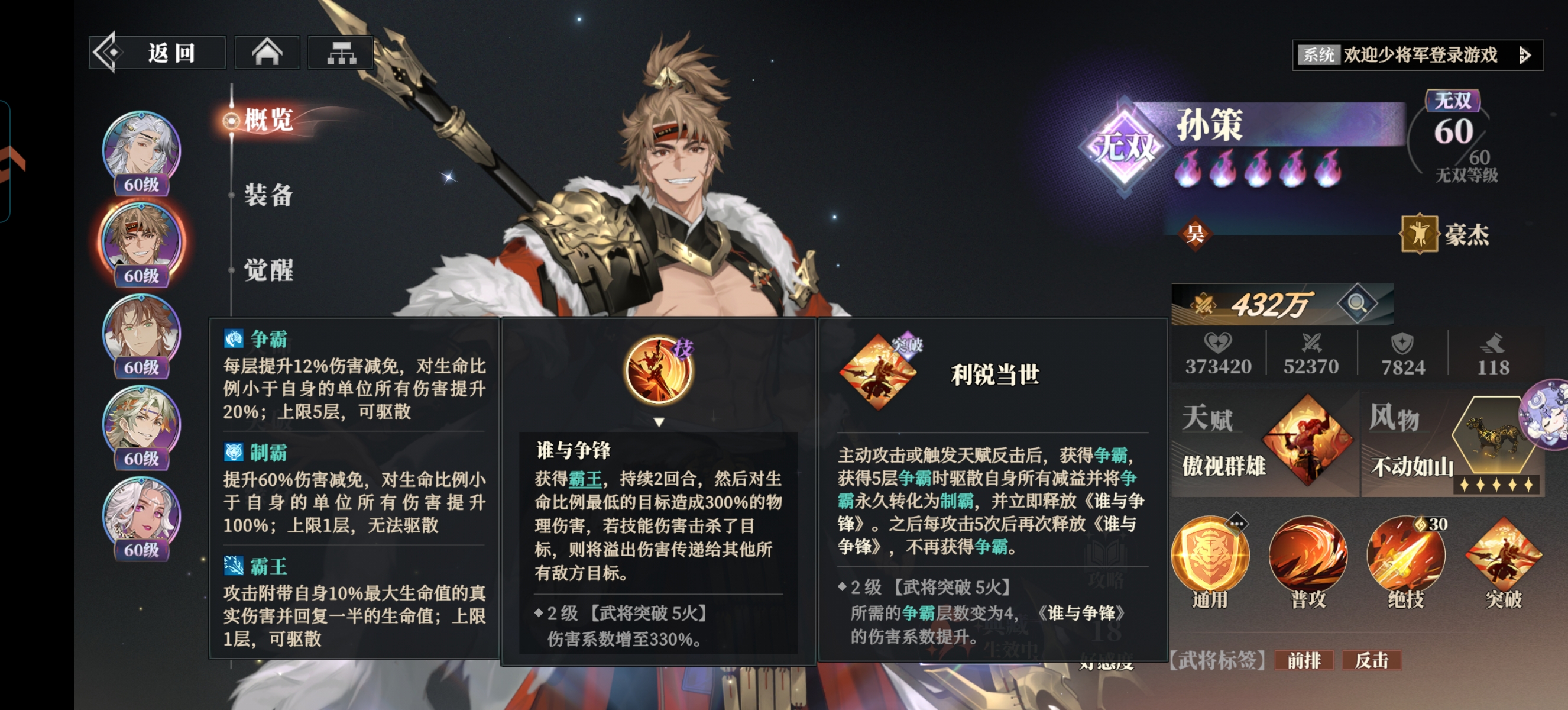 ②孙策:豪杰(提升同列队友生存)