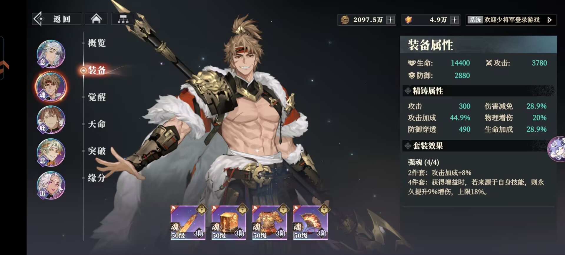 ②孙策:强魂套(获得增益提升伤害)