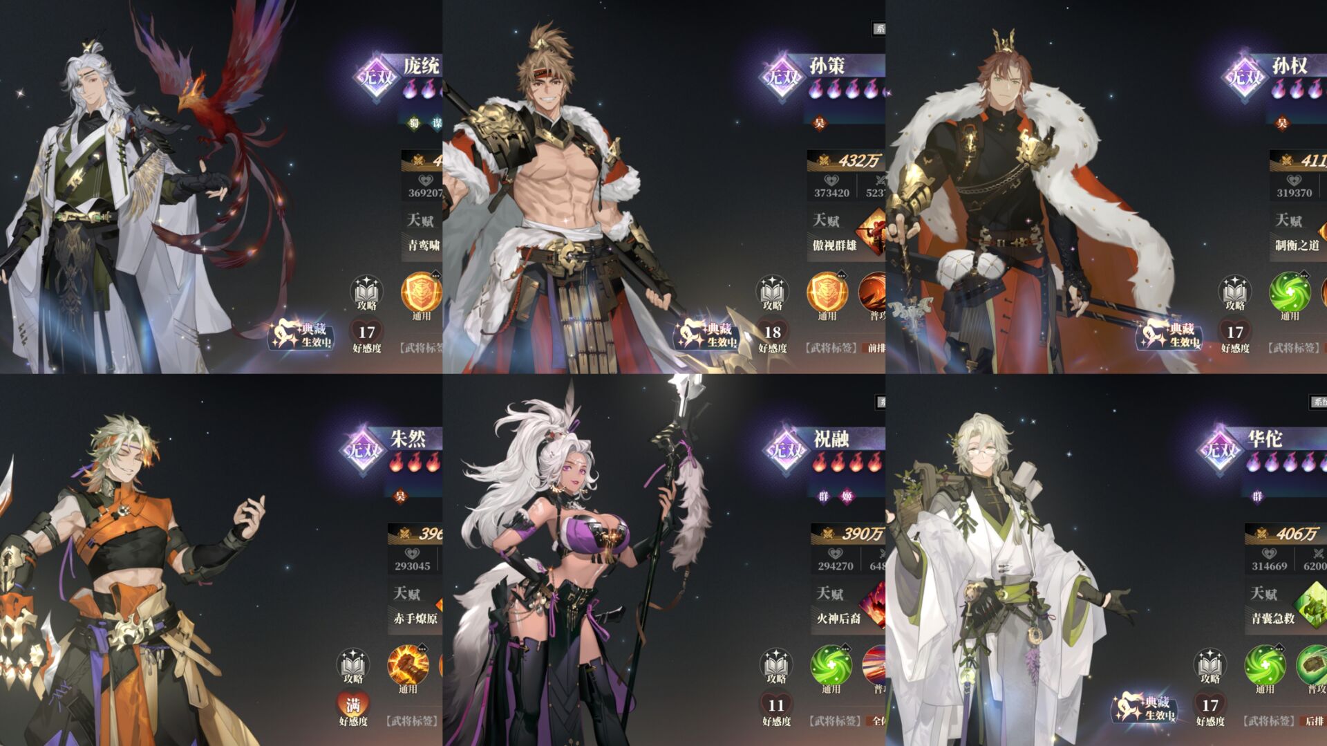 怒焰:可降低敌人30%抗暴率,从而让庞统的推条效果可以更好的触发,祝融和孙策以及庞统可谓是绝配。