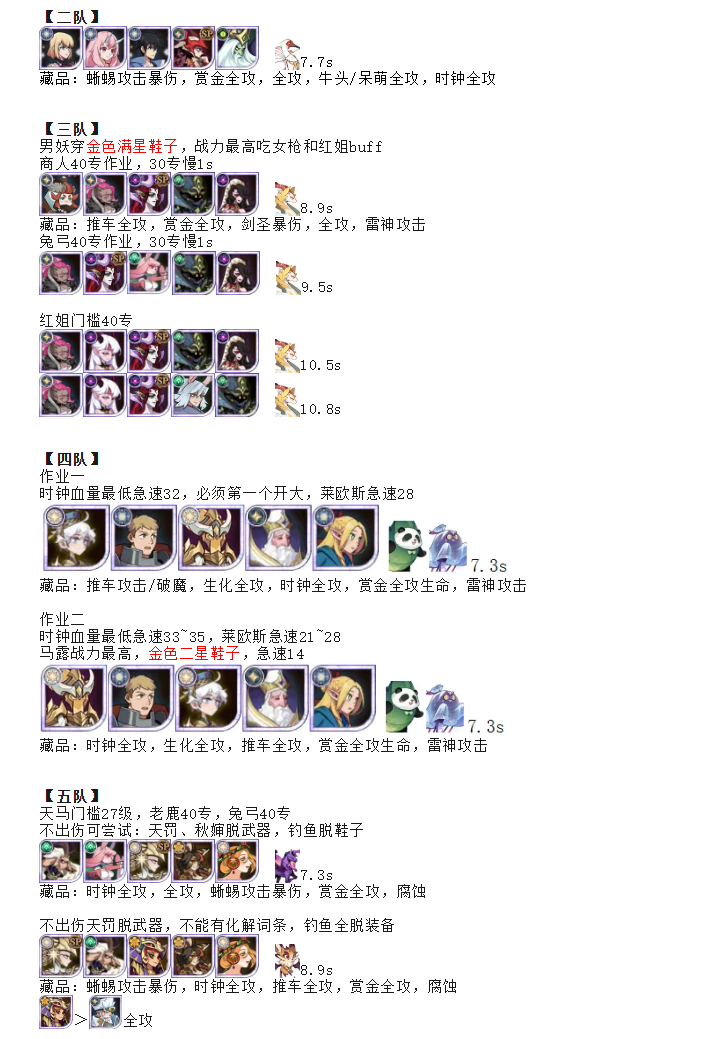 1.本期四队有蛮血/亡灵Buff,时钟作业不需要调整