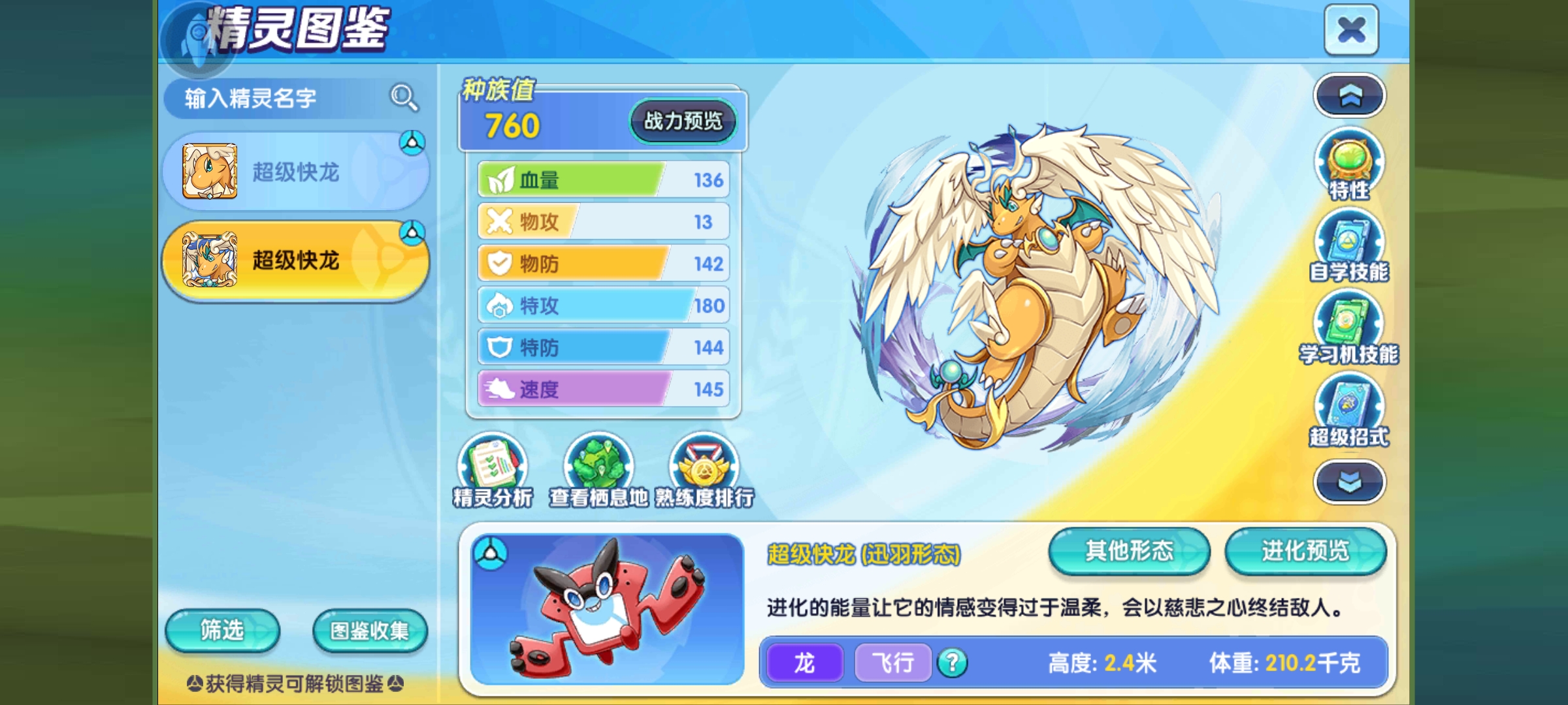 然后来看一下属性,新快龙是飞行系和龙系组合,抵扣了格斗、虫、火、水,弱点弱两倍岩、两倍龙、两倍妖和四倍冰,抵扣方面抵扣了比较热门的格斗和火,弱点方面弱的都是比较热门的,但是特性和专属的存在,让他依旧很强。