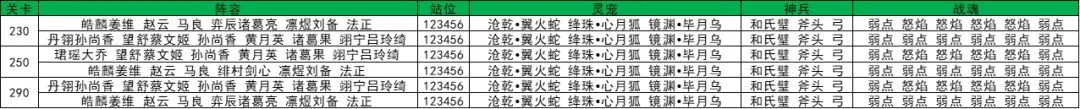 阵容一:望舒蔡文姬(辛宪英羁绊)+赵云(专武+五红)+皓麟姜维(诸葛果羁绊)+法正(专武+五红)+诸葛果(专武+五红)+昭临曹丕(甄姬羁绊)阵容二:皓麟姜维(诸葛果羁绊)+望舒蔡文姬(辛宪英羁绊)+黄月英(专武+五红)+法正(专武+五红)+弈辰诸葛亮(黄月英羁绊)+诸葛果(专武+五红)阵容三:皓麟姜维(诸葛果羁绊)+望舒蔡文姬(辛宪英羁绊)+赵云(专武+五红)+弈辰诸葛亮(黄月英羁绊)+马良(专武)+法正(专武+五红)
