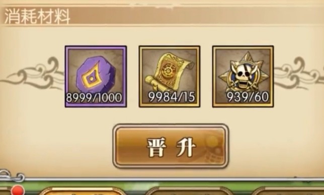 2.晋升类似于突破,晋升的材料根据已知爆料来看共有三种