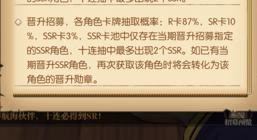 可以看到晋升招募类似限定招募,需要从众多sr和r卡中抽取自己想要的角色,想必又是一个极其需要氪金的玩法