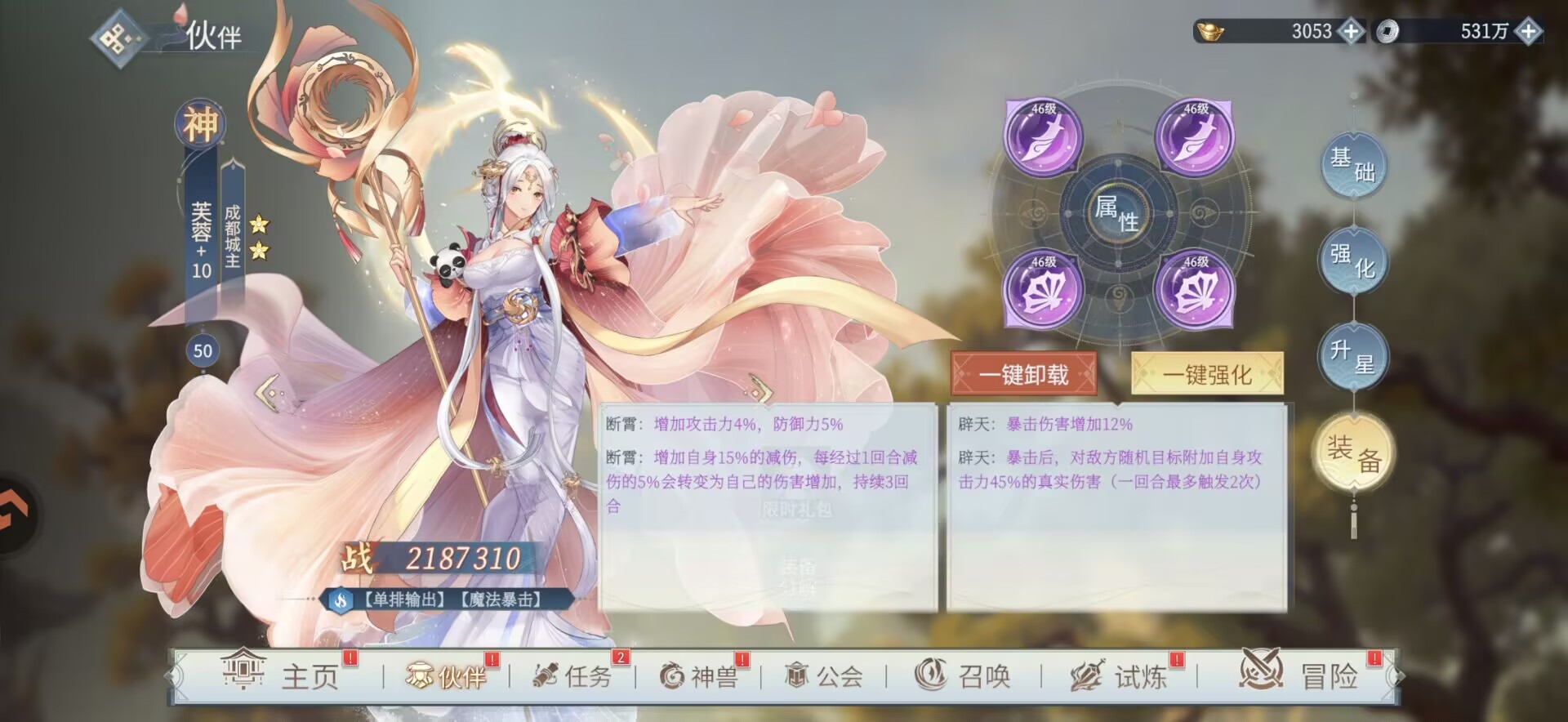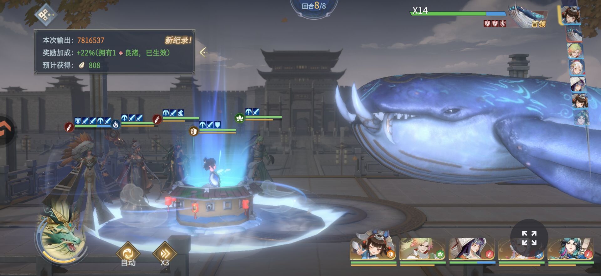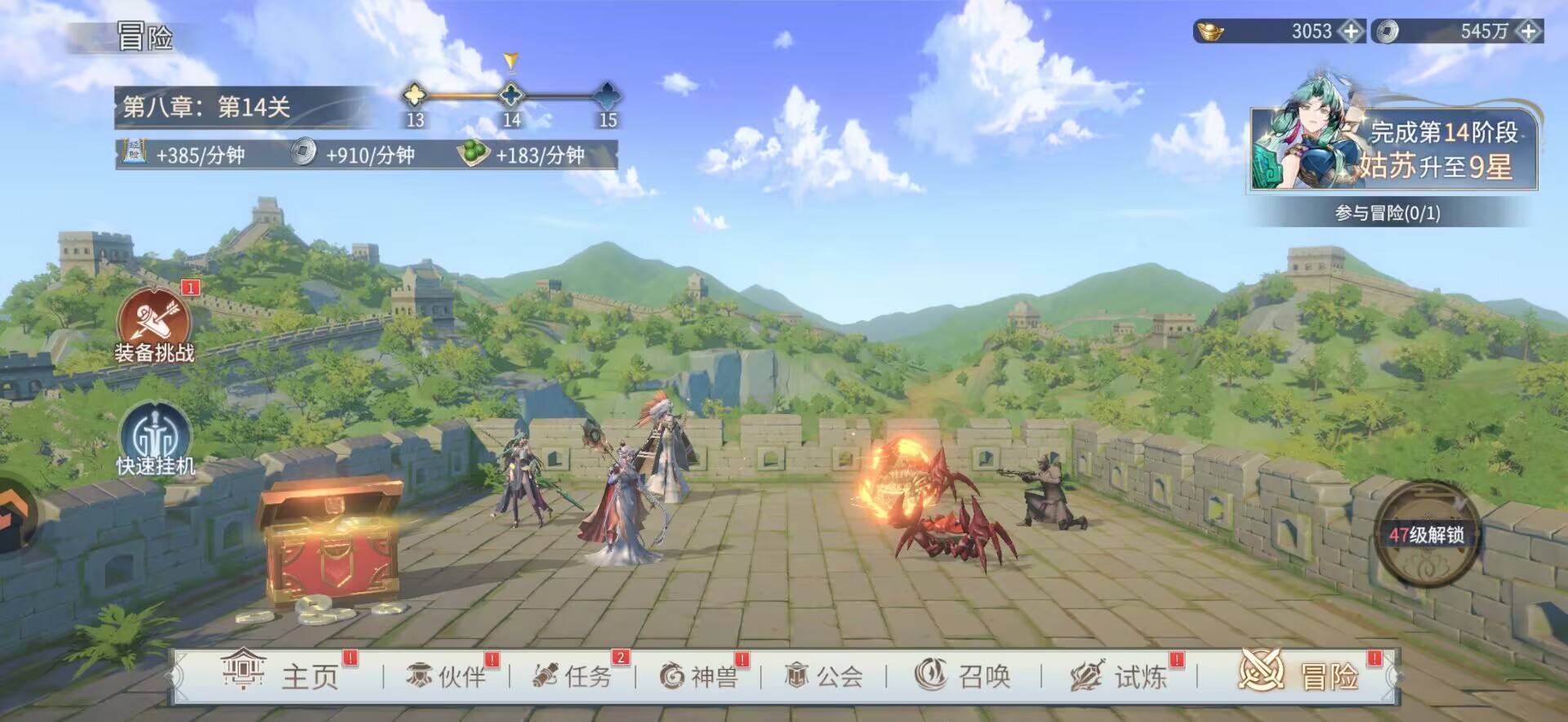 4:【青龙塔】【田忌赛马】【北冥有鱼】。主c的装备强化到上限,主力阵容等级拉到上限以后就去爬塔和打活动副本。