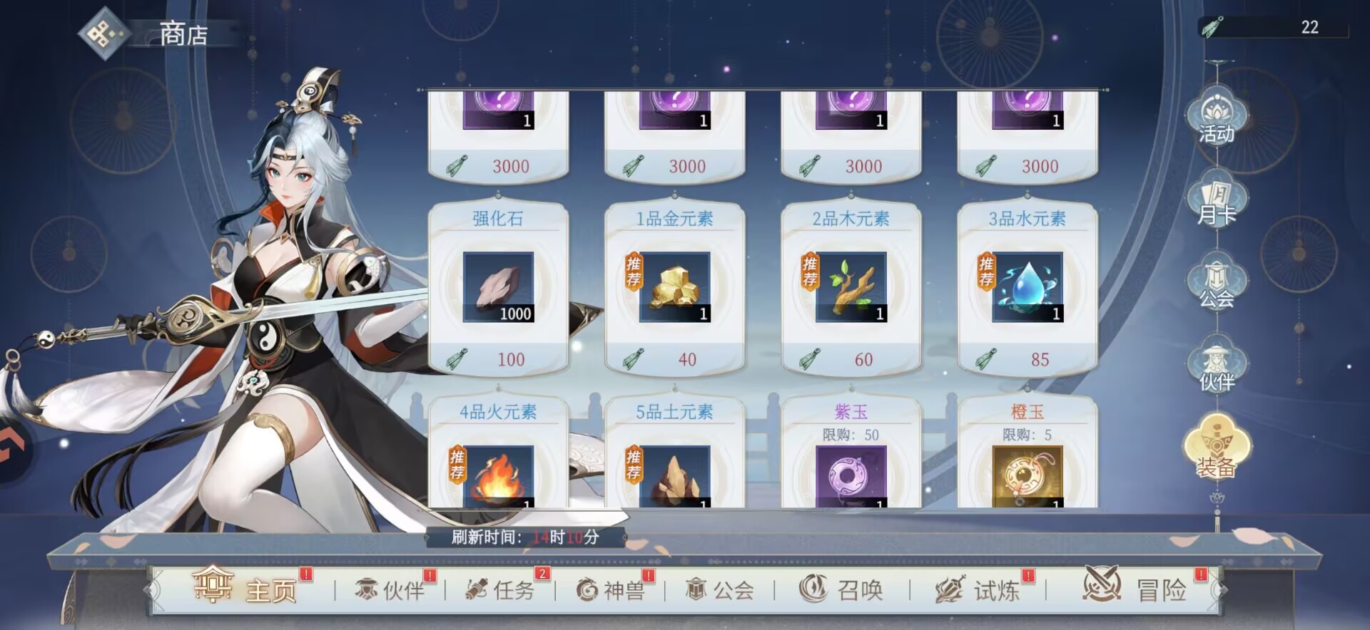 优先兑换装备的突破材料【元素】用于给主c突破装备等级。