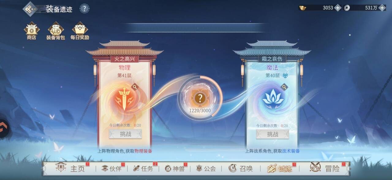 第三天的装备本对比第二天难度有些许增加对于完全0氪平民玩家来打到40层也是有点挑战所以核心培养一个物理c和一个法c的作用就体现出来了,搭配其他角色就可以轻松突破40层