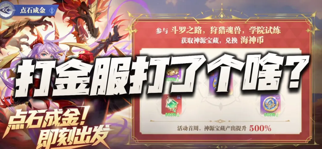 要说这周咱们游戏啥最出名,那么这个名头就非是打金服和点石成金活动莫属了,其中打金服这个东东是新区专有的,而点石成金活动中则是新区和老区共用的,不过新区显然福利程度要高很多很多,这个也符合于运营的基础逻辑,毕竟也没有哪个老区玩家会为了打金服新区的这点福利就去新区开个号一直玩下去吧......