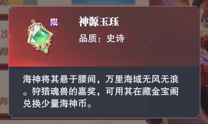 而关于老区的这个点石成金任务嘛,其实客观来讲主要就是拿下图中的这个神源玉珏来兑换限时海神币,然后咱们就甚至可以白嫖到一个魂导器......