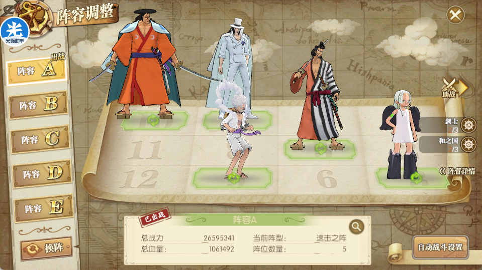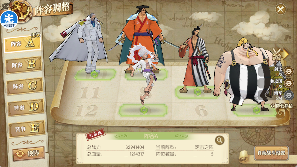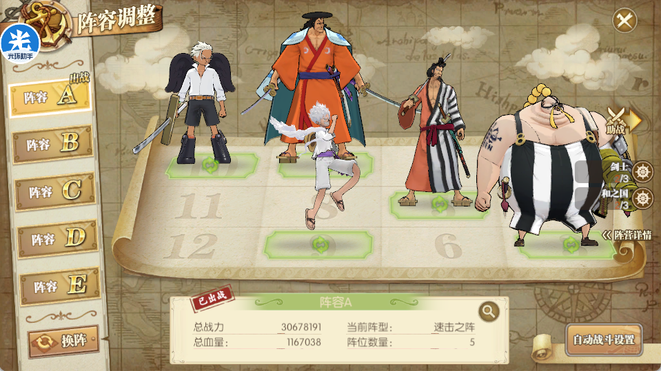 这一队是纯肉阵容,而且都是觉醒的,觉醒越高越好,同时装备要求也不用太高,主要是御田速度尽可能超过尼卡,护盾嗷嗷高!