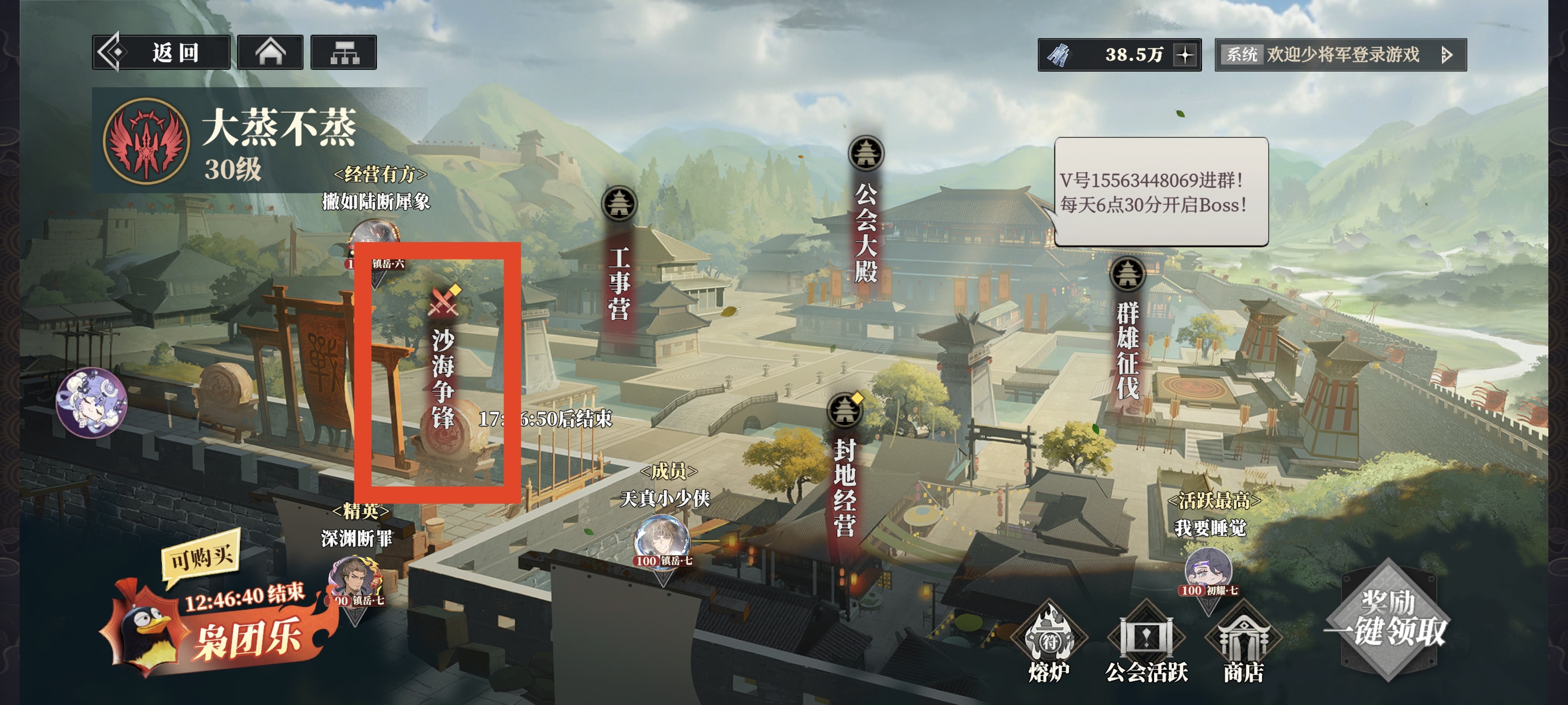 一、玩法概述沙海争锋可以从公会界面原公会战位置进入。
