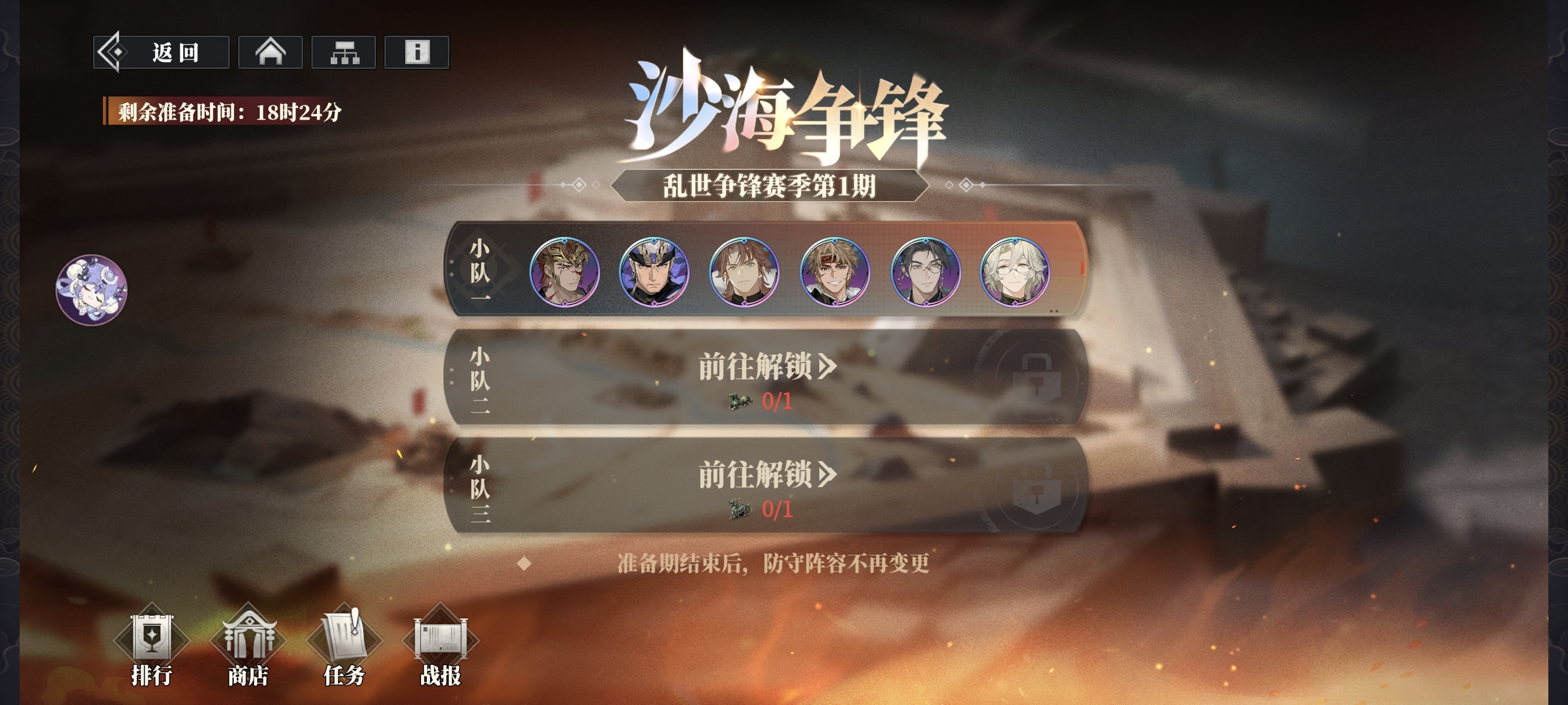 防守布阵则是在每期匹配阶段布阵,一旦活动开始则锁定不能更改。