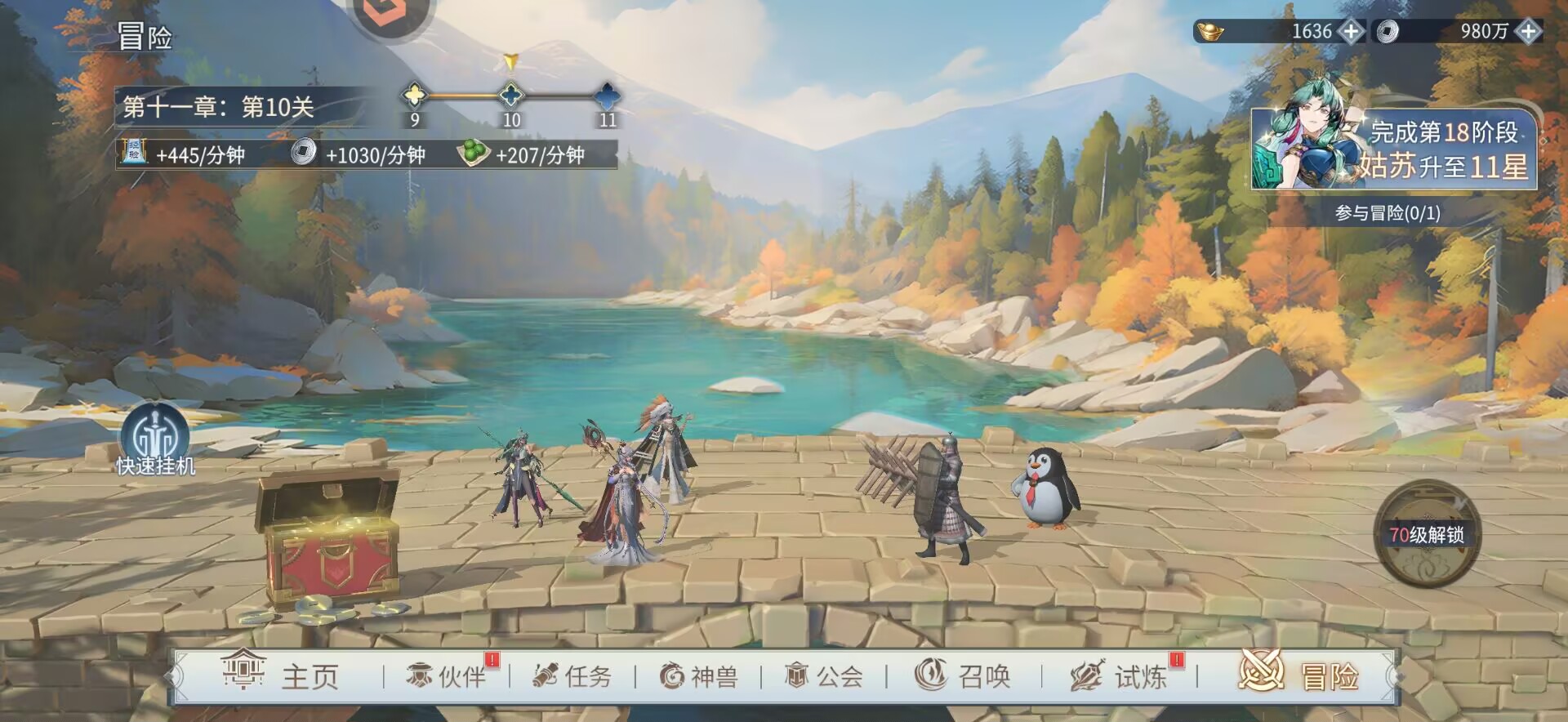 1:【推主线】早上领完全部的挂机收益可以到64级,中午大约1点左右可以到65级。
