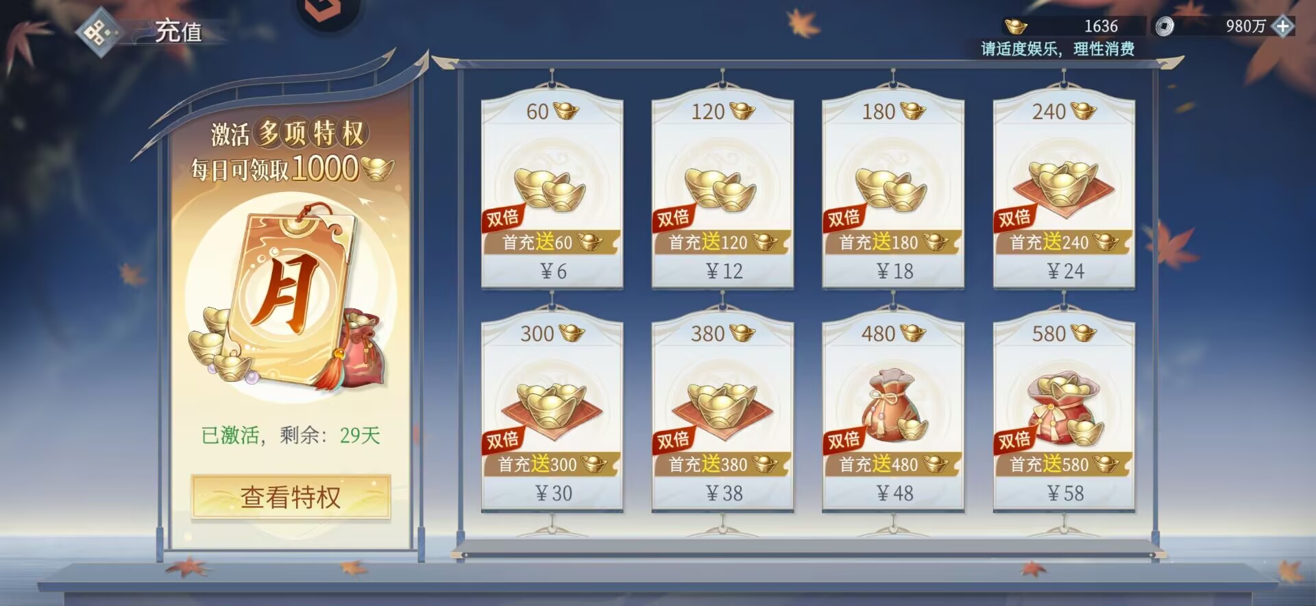 因此我们的元宝可以根据自己的需求去买铜币和包子。折扣的8小时铜币和24小时通币可以按自己的需求购买一些。
