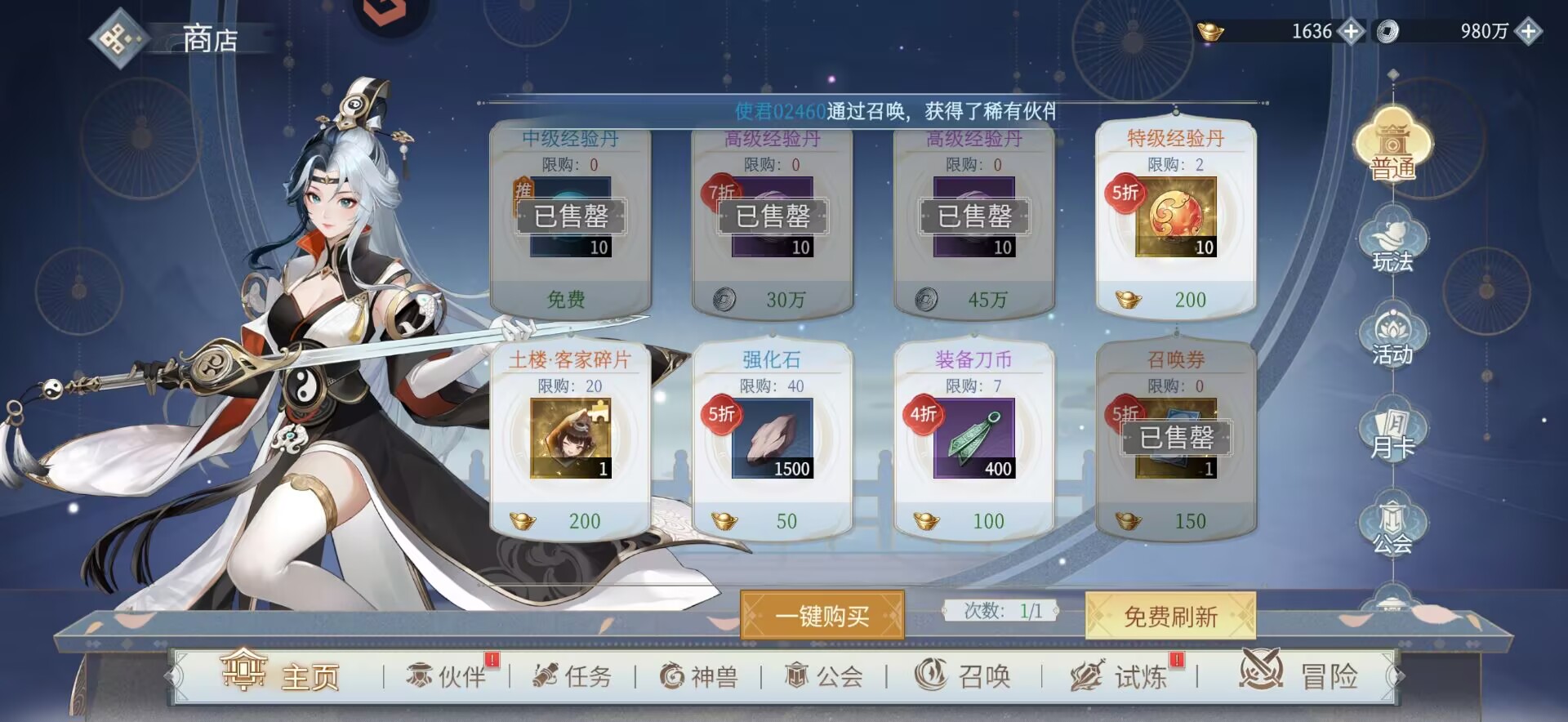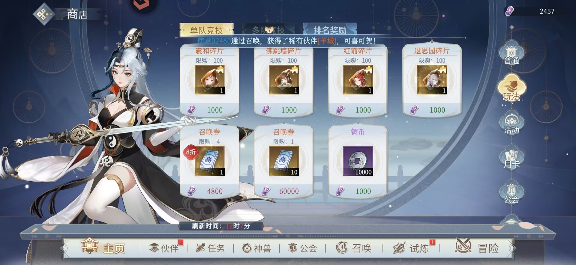 5折召唤卷必买。