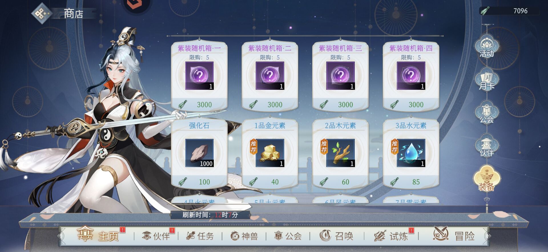 ④爬塔和装备试炼。