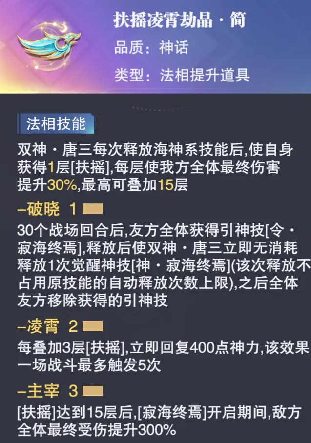 反正......成本还是一如既往的高,当然搞不搞得起和愿不愿意搞是一回事,这个货多功中的一些资源官方出的逻辑咱们倒是也可以聊上一聊,首先便是SP李慕婉的普攻双系魂环,大家也都知道李慕婉也是一个2、4技能都非常强力的代表,所以类似于之前的SP唐舞桐,官方这波也是给李慕婉上了普攻的双系魂环,不过就轮普攻双系魂环能带给实战的影响嘛,肯定是要略低于2、4双系魂环的。然后大家可以注意下SP伊莱克斯的这个专属丹方,其核心也是为了提升短图的爆发力,所以官方在设计伊莱克斯的售后逻辑上,依然会更为看重他的短图爆发能力,这点已经和之前SP李慕婉的不少售后有了更好的联结,并且结合到SP王林甚至能有1+1+1>3的实战反馈。接着则是神三的左侧海神翅膀的简版本......而这个翅膀之前是在4周年庆活动周期之际,打着4周年庆标签上线的限定翅膀,而当时这个......翅膀的价格嘛大概是1500元+1W钻石上下,结果反过头来看这次的简版翅膀,获取成本仿佛也没低多少,哈哈,这点也欢迎大家留言来聊聊自己的看法吧。然后针对李慕婉的进化魂骨嘛,又一个兼具了长图、短图和PVP三端功能的综合魂骨,其中对于短图的提升意义似乎是最大的,不过这块魂骨虽有一定的质变能力,但对于PVP实战的影响倒不会很大,所以依然是随缘的道具。最后这个众神归源或七位一体的突破道具嘛,应该超过90%的玩家都是望洋兴叹的状态,毕竟过去的七位一体想要拉到满对于大部分朋友而言都还有一段差距,这就更别提上线时间较短的众神归源了,而且就这算下来要超越6000元的成本来讲,我心态好点去换个手机不好么......哈哈。