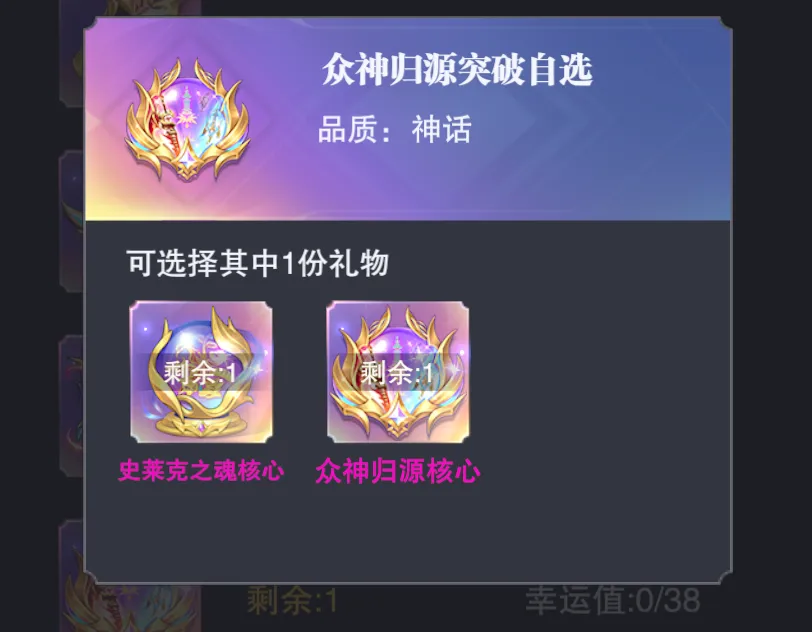 右侧扭蛋39抽保底的众神归源魂环突破礼大致获取成本为:4000元+15000钻石