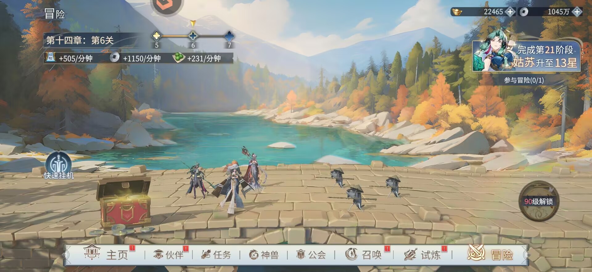 1:【推主线】晚上等级可以突破88级。上线以后老规矩把该领的福利和签到奖励都领了然后就去推主线。