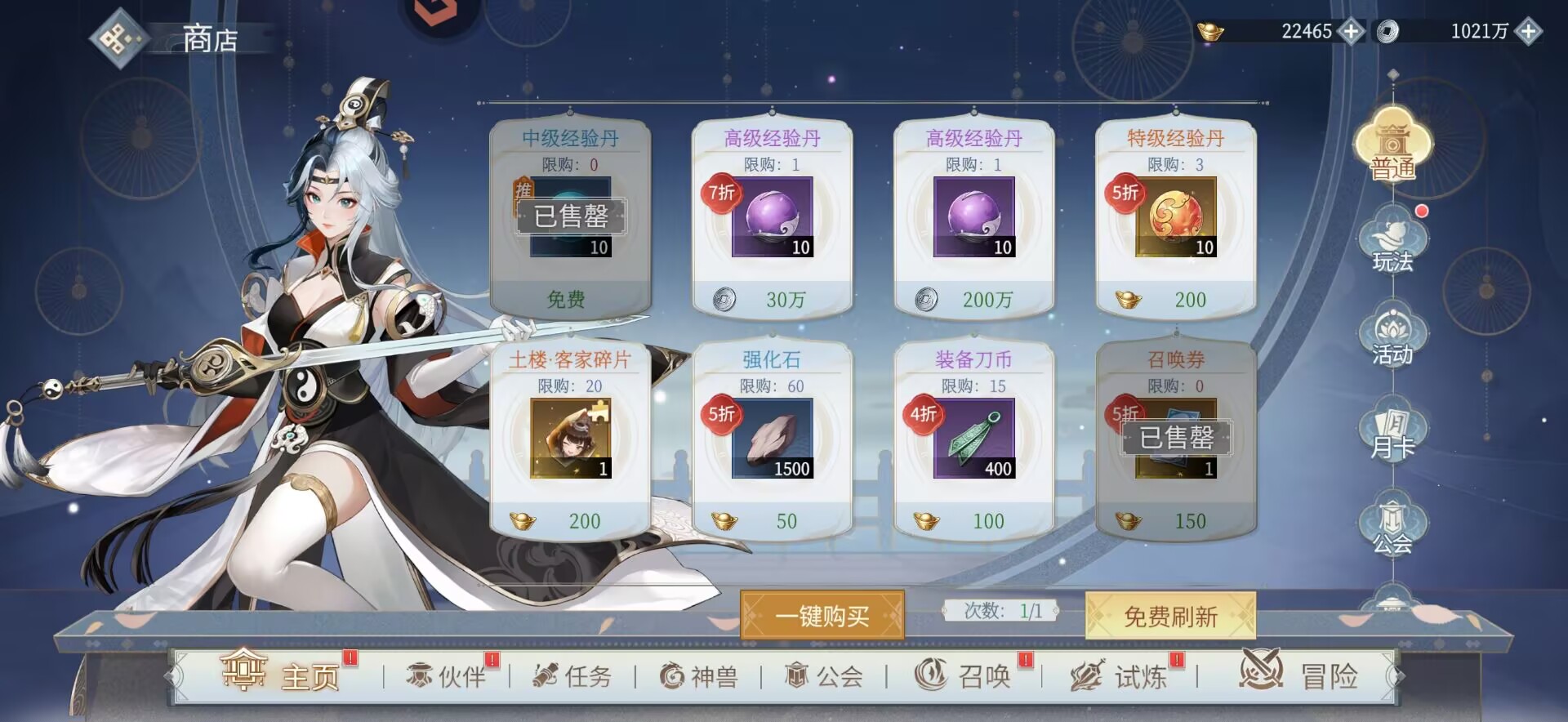 所以不需要像昨天一样买大量的铜币和包子和经验丹。