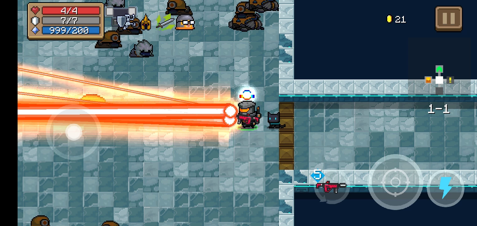 除了这把枪,建议再带一把近战武器,机器人血量较低,可以砍掉弹幕等待盾回满。