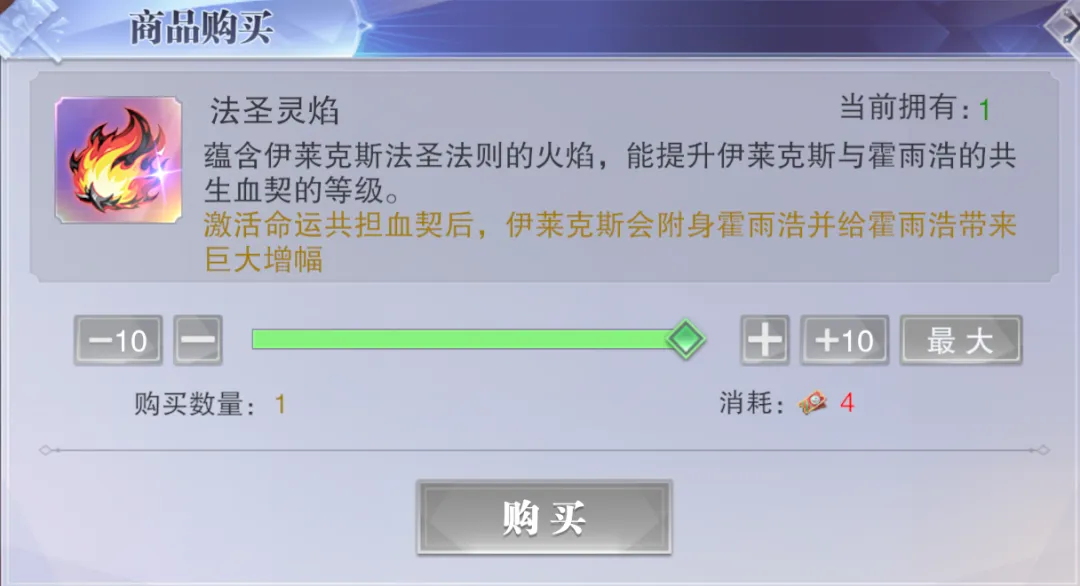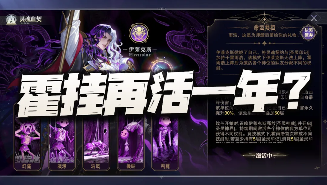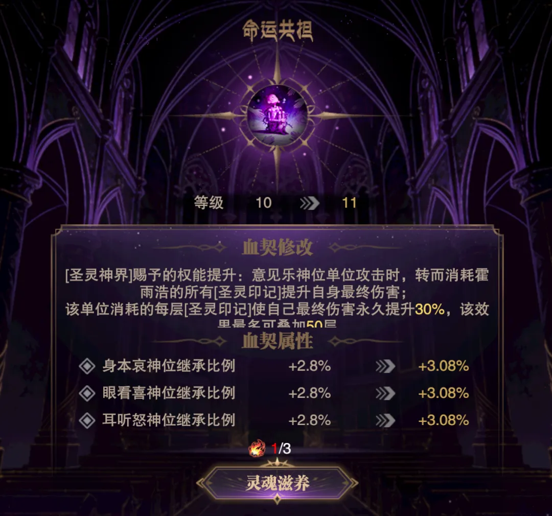 首先共生神石这个道具需要抽高级应援340次才能保底获得,按照这个活动的传统而言,其基本上也是得非常接近340次了才能出,所以如果按照保底成本来算的话,340抽大概需要2000多元+8000钻石左右的成本,因此这个道具的成本还是相当这技夸张的......当然大家也可以选择在龙纹商店中花费600个石头进行兑换,那为了及时测试,维一也是选择的这个方式获取到了此道具。此外光凭一个“共生神石”是无法激活SP伊莱克斯附身于霍雨浩的效果,咱们还得额外备一个“法圣灵焰”道具才行,这个道具得从今天上线的平安好礼活动中获取,最多可以获取2个,那至少拿1个的成本为120元或8500钻石,另外特别提醒,额外获取的“法圣灵焰”可以提升伊莱克斯附身于霍雨浩后的命运共担等级,但这个等级在提升起来后并非花费1个“法圣灵焰”就能升1级,例如维一目前的命运共担等级为10级,此时就得需要3个法圣灵焰才能升1级了......后续果然是个无底洞啊。然后在激活了附身效果后,大家可以看到底下五个血契的具体效果都会发生改变,且能享受到的魂师也会发生改变,其会按照不同魂师继承霍雨浩的神位来分类,其中不包含霍雨浩本体。而不管是哪个效果,其大致的逻辑就是增伤,而增伤的关键就是需要不断叠“圣灵印记”,在有了一定层数的圣灵印记后,我方主C在攻击时便能消耗圣灵印记来永久提升自身的伤害,大概这就是附身系统给霍雨浩带来的全新质变,且由于附身系统和契约的等级息息相关,等级越高则附身系统的增伤能力就会越强,上限非常可观,但未来的成本也是深不见底,大家还需要注意。 那么大家目前很关心的问题肯定就是附身系统到底能带来多高的增伤效果呢?这里咱们就通关0回合短图和5分钟的5桩长图来做个细致的对比,用的阵容是三控两辅阵容,SP尘心为主C,短图打的副本为25-5剧情副本,长图则打的是世界悬赏的敏攻系5桩boss。首先在短图方面,没有激活附身系统时的阵容伤害大概可以打1万亿²⁰-10万亿²⁰左右,大家可以先行参考一下。而在激活了10级等级的附身系统后,短图的伤害可以略微提升到10万亿²⁰-100万亿²⁰左右,这个提升幅度对于短图副本而言并不算很高,但聊胜于无吧。接着在长图战斗中,没有激活附身系统时的阵容伤害大概可以打到100亿⁴³-1000亿⁴³左右,这个数据大家先行参考一下。然后在激活了10级的附身系统后,这个阵容的伤害可以立刻提升到1000亿⁴⁴-1万亿⁴⁴左右,提升幅度可以超过1个亿,那么在测试号的这个练度上就算是相当可观的幅度了,大家练度更高的话可能会有更高的提升幅度。并且这个附身系统的等级目前最高的效果是算到20级,而0-10级的提升和10级-20级的提升是不可同日而语的,因此未来随着更多升级附身系统等级的道具逐步上线,SP伊莱克斯能带给霍雨浩的增益也会越来越高,此外还有部分朋友肯定会问如果不用三控阵容,而用双控阵容的话,SP霍雨浩在有了附身系统后跟SP雪帝比谁又更强呢?这个问题吧维一也测了测,我的号上是雪帝更强一些,当然这里也和大家的售后练度等因素也有直接关系,所以以上结论仅供大家参考,但的确伊莱克斯的附身系统也给了霍挂全新的希望,搞不好在2026年他还能驰骋不短的时间,最后当然也欢迎大家留言来参与讨论吧!