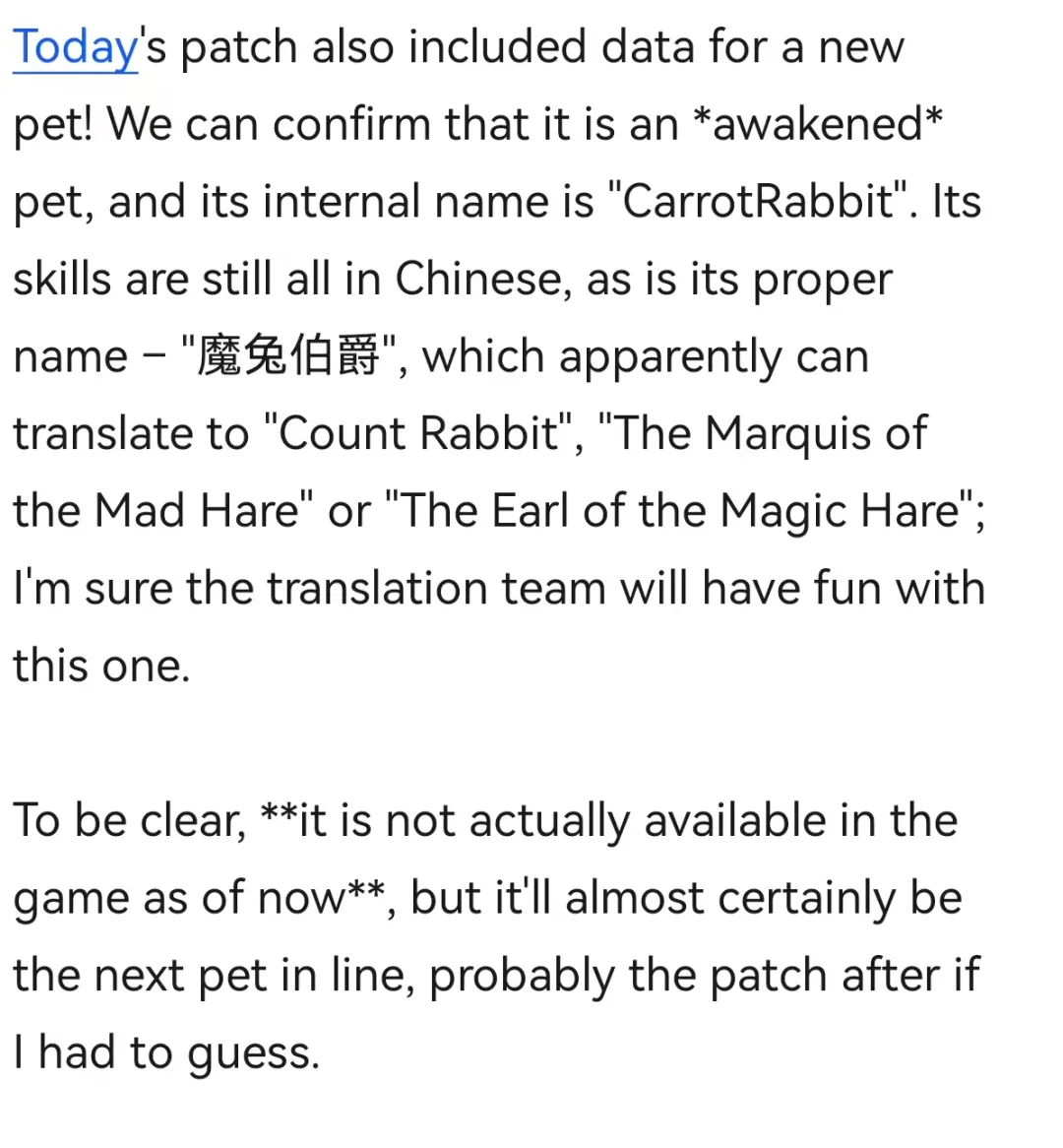 新SP宠物——魔兔伯爵