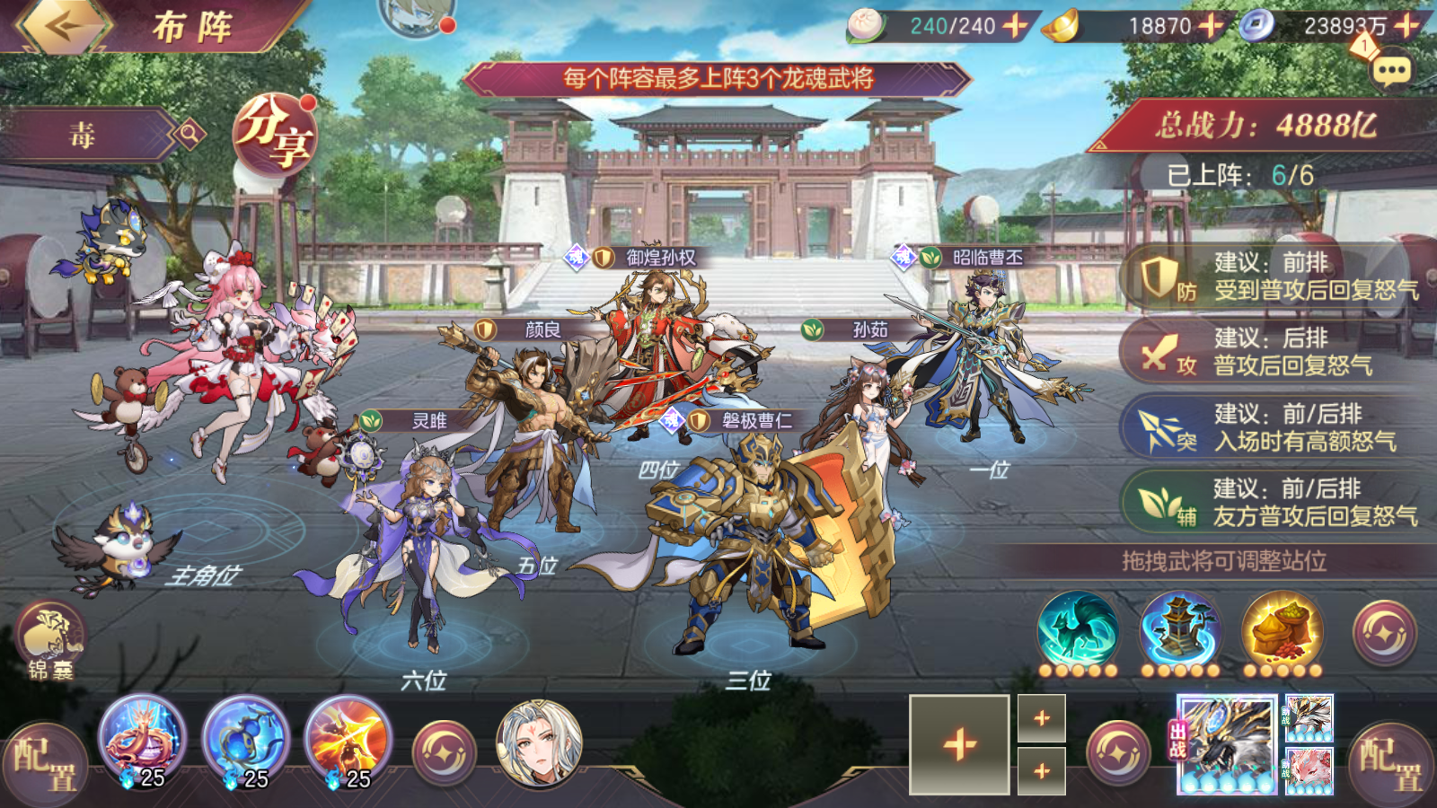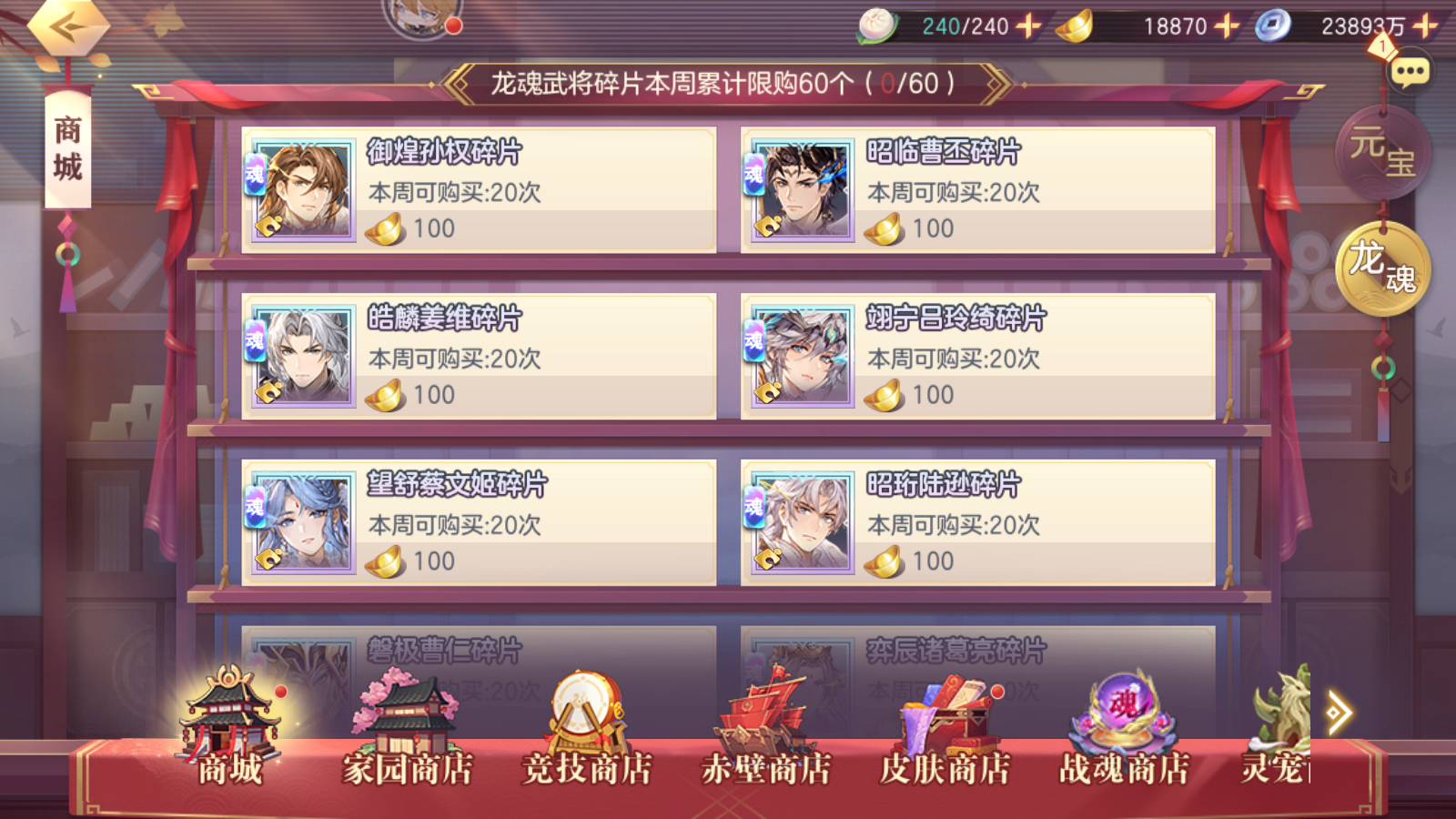 龙魂商店购买:魂孙权、魂曹丕、魂曹仁(魂曹仁一火以后停手,换魂诸葛开锦囊,另外两个往上补,最好走到5火)