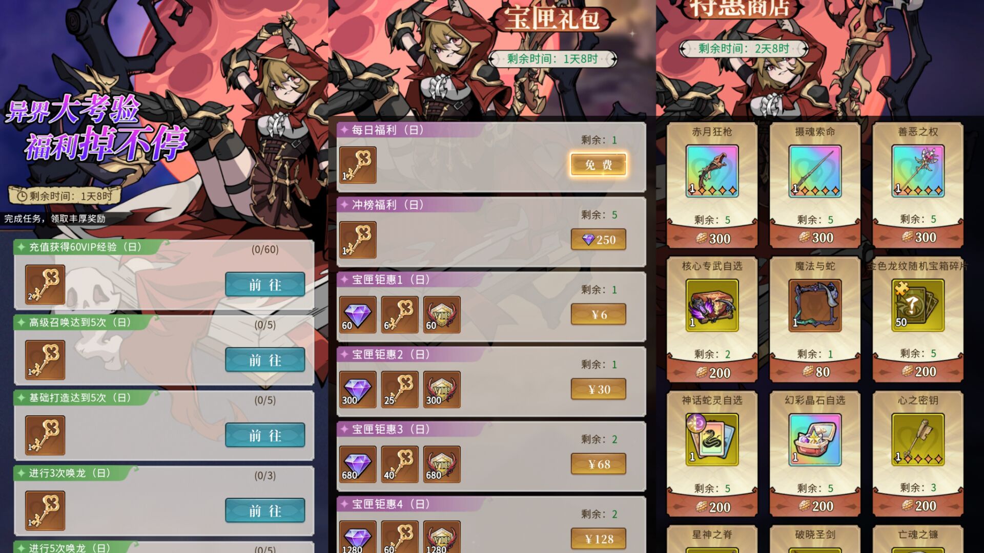 因为活动商店里有【大红帽】【大白雪】【黑魔王】的专武兑换,而且还有其他的角色的专武都是可以兑换的。