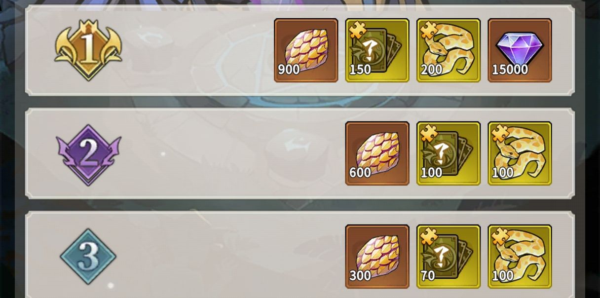 第一名可以获得:900神龙鳞片+150金色龙纹+200盲盒碎片+1.5万钻石。
